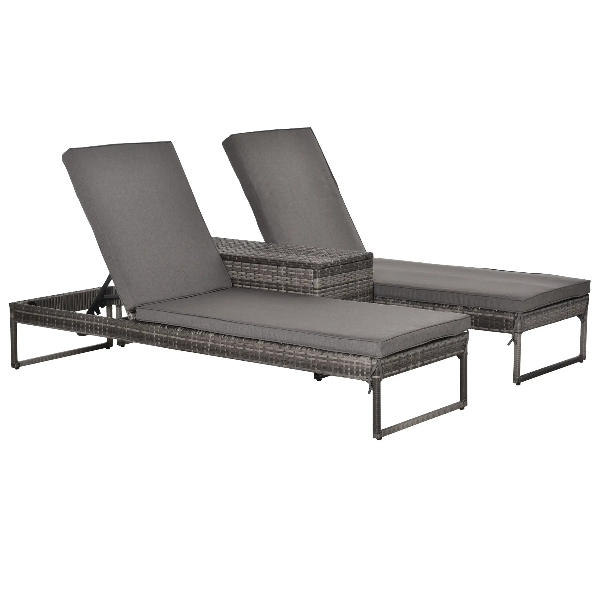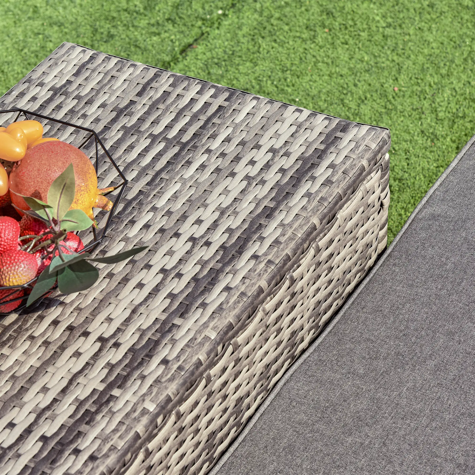 3pz Componibile 2 Lettini Prendisole (60 x 195 x 86cm) 1 Tavolino (121 x 40 x 50cm) Rattan con Materassini Grigio