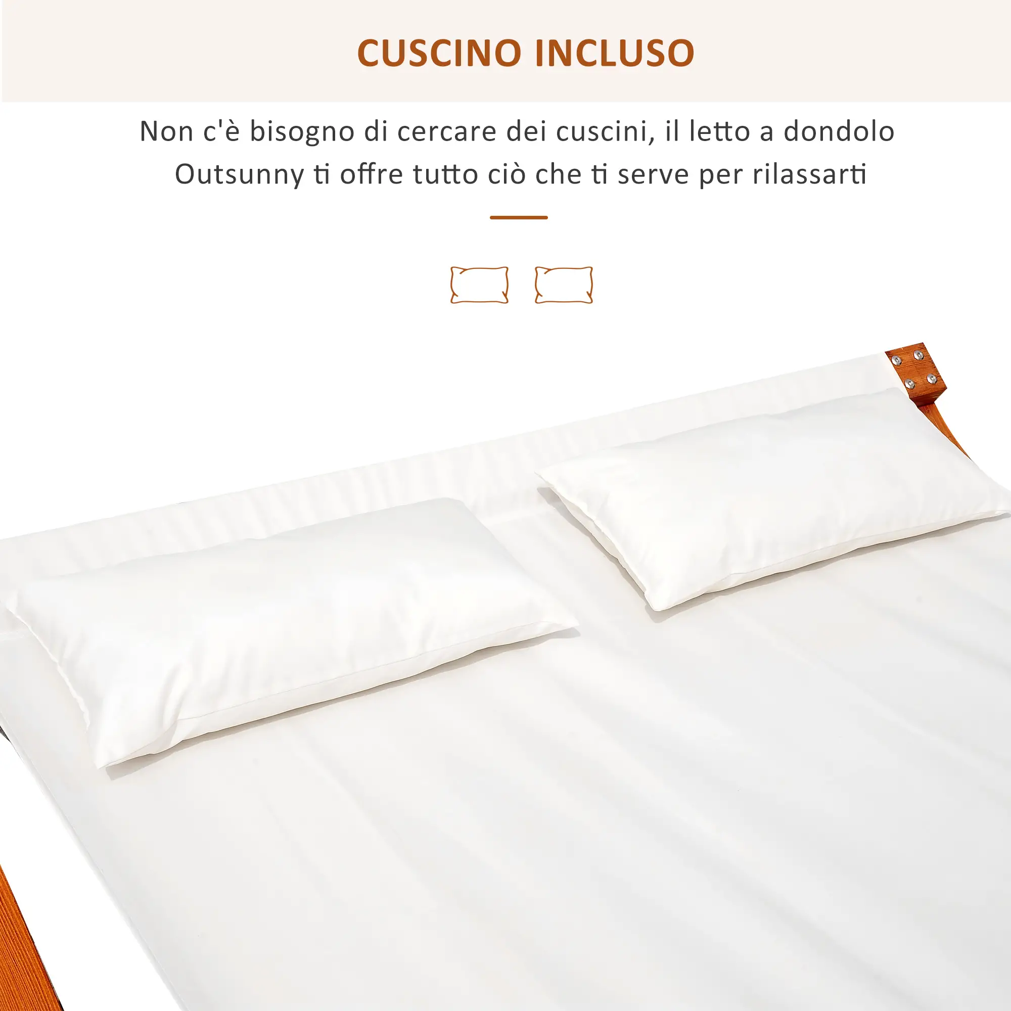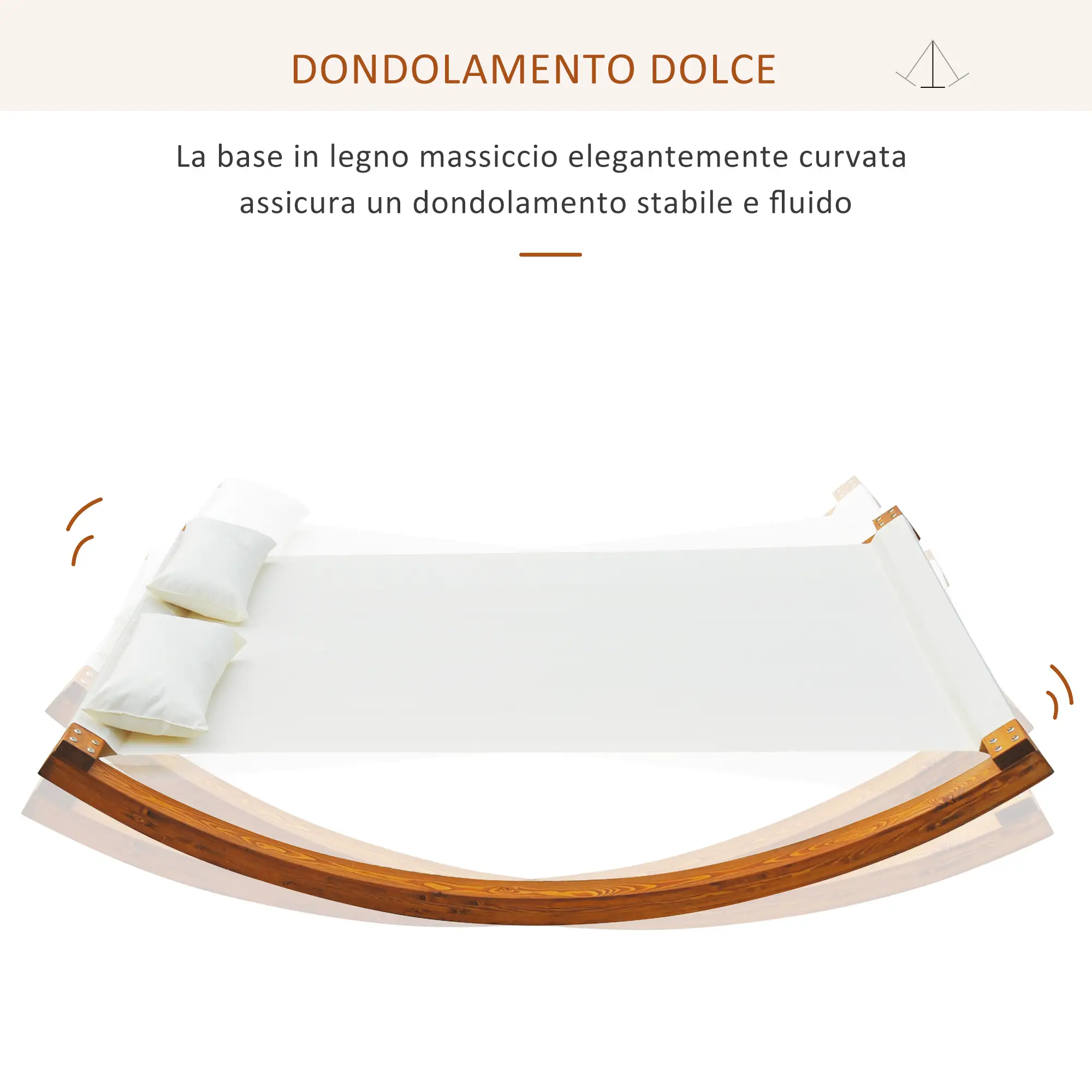 Amaca da Giardino con Struttura in Legno, Lettino in Cotone per 2 Persone con Cuscini, 207x150x40cm Bianco