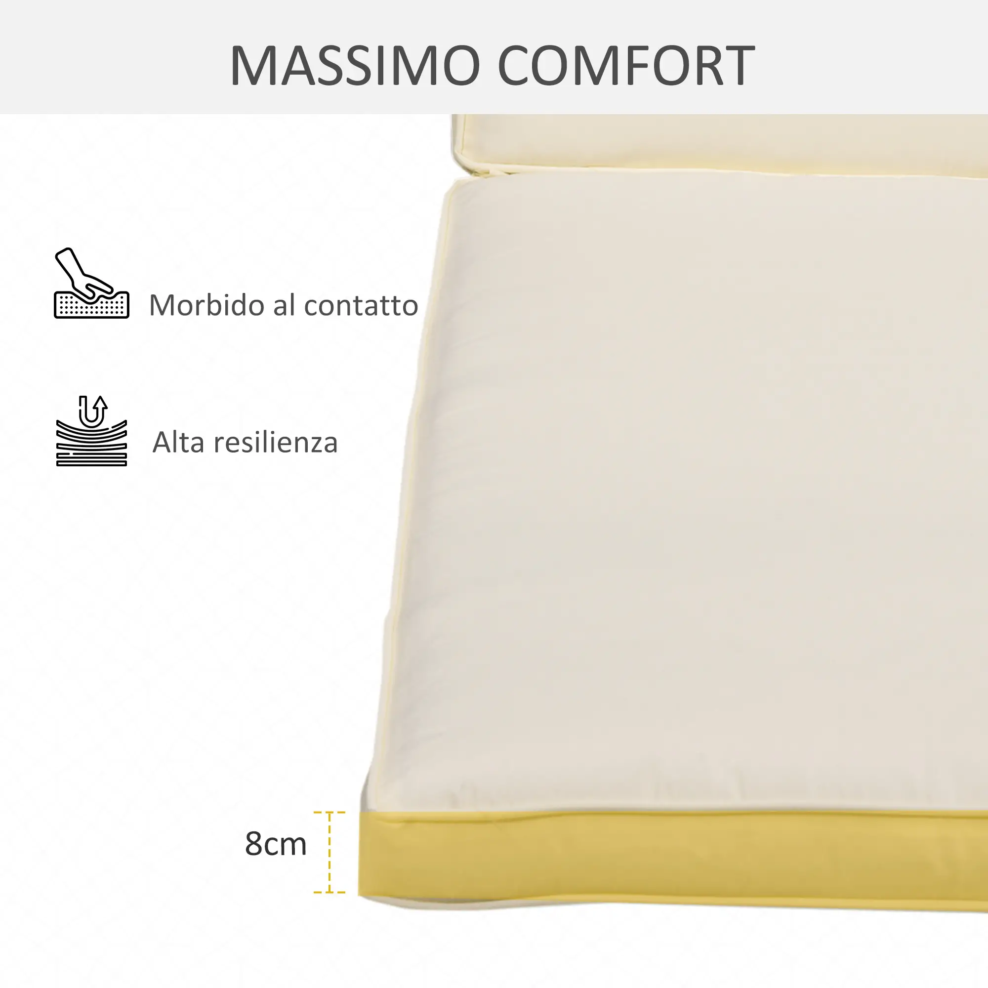 Cuscino per Lettino Prendisole con Rivestimento Poliestere Sfoderabile, 188x53x8cm, Bianco Crema