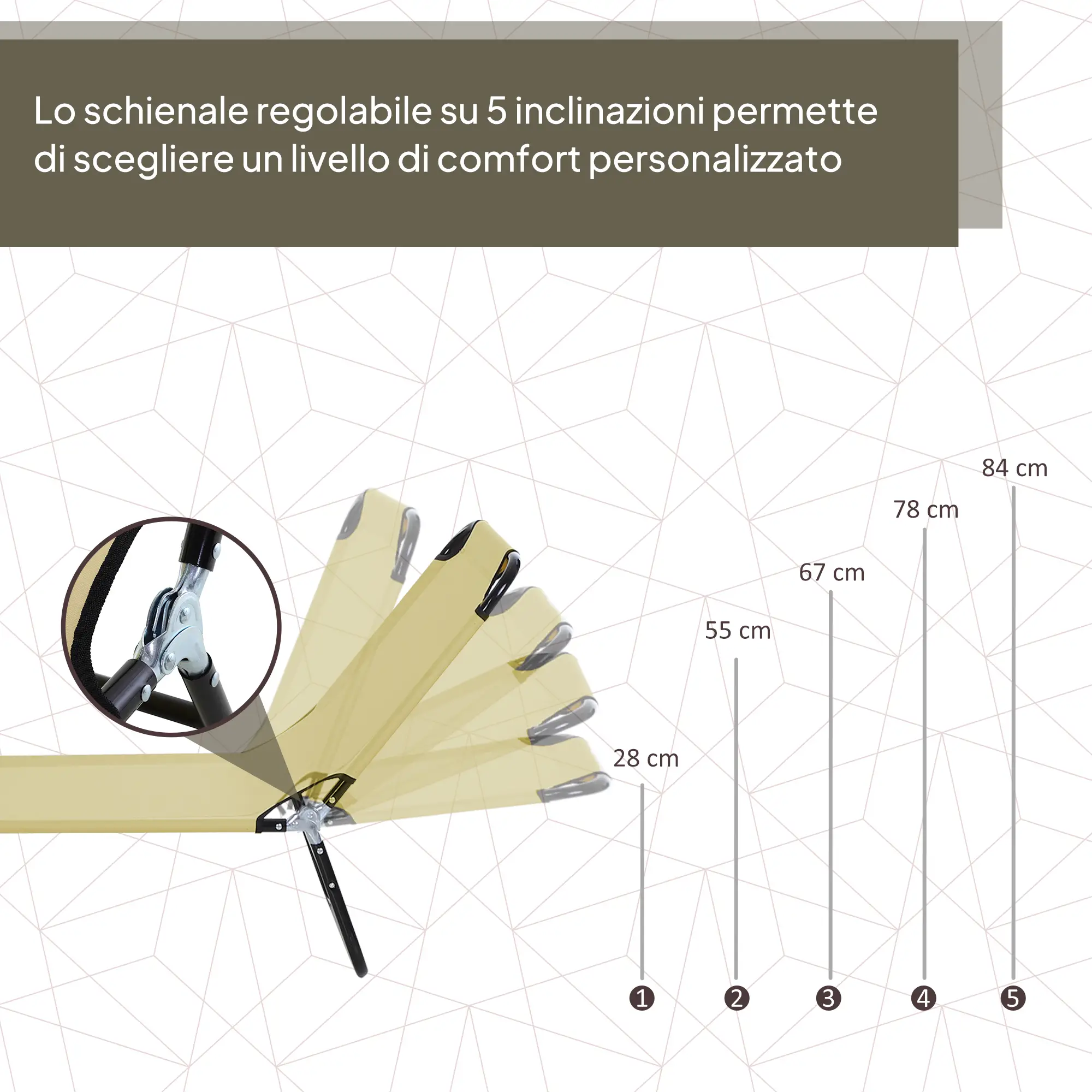 Lettino da Giardino con Schienale Regolabile in 5 Posizioni, in Acciaio e Tessuto Oxford, 188x56x28 cm, Beige