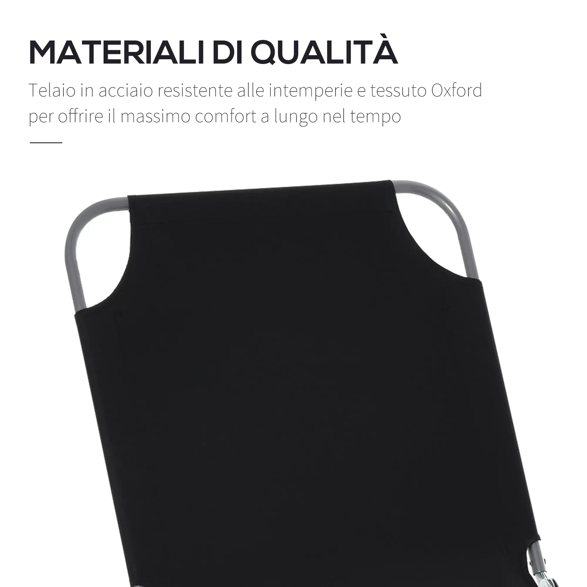 • Il resistente tessuto Oxford del lettino da giardino è abbastanza robusto da resistere in campeggio