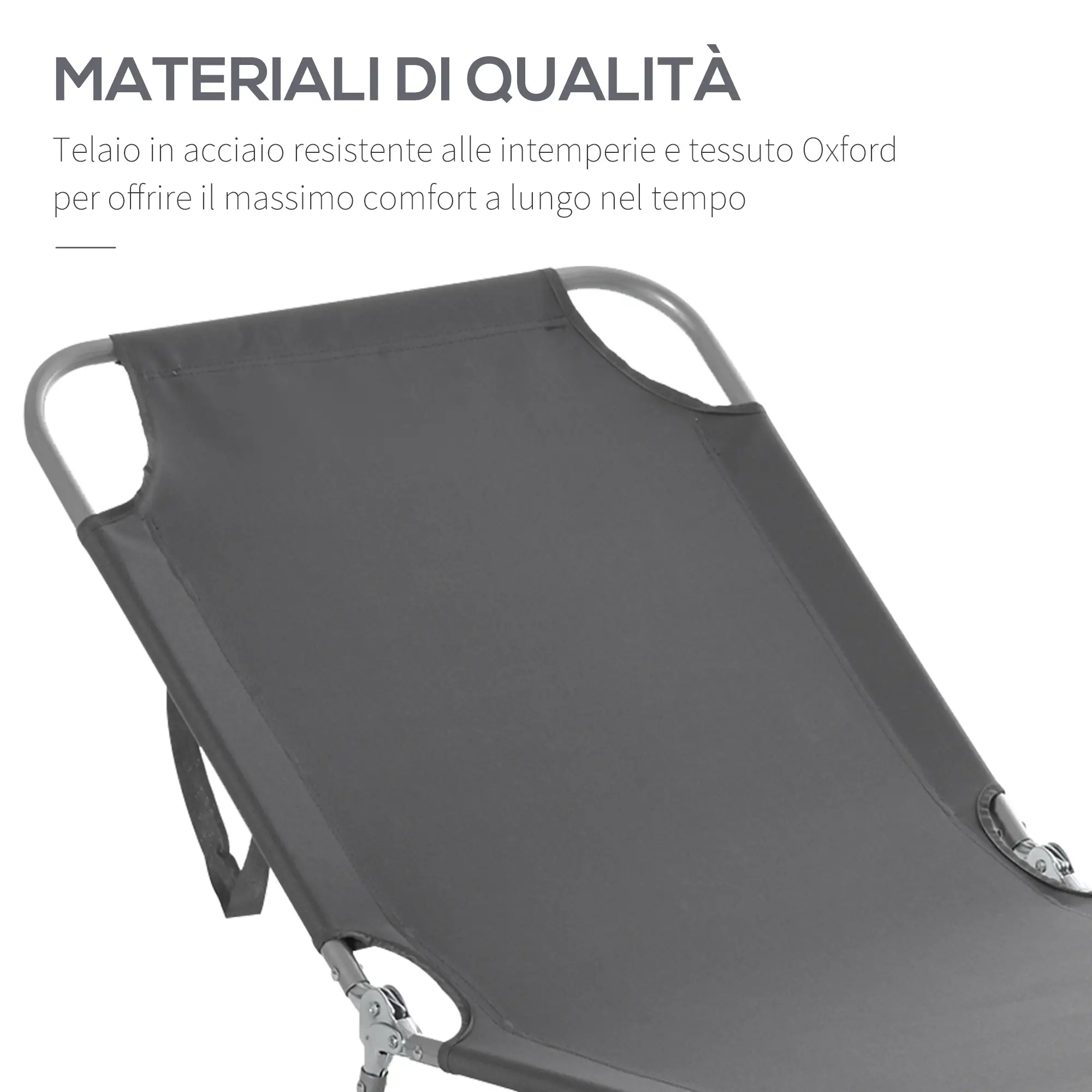 • Il resistente tessuto Oxford del lettino da giardino è abbastanza robusto da resistere in campeggio