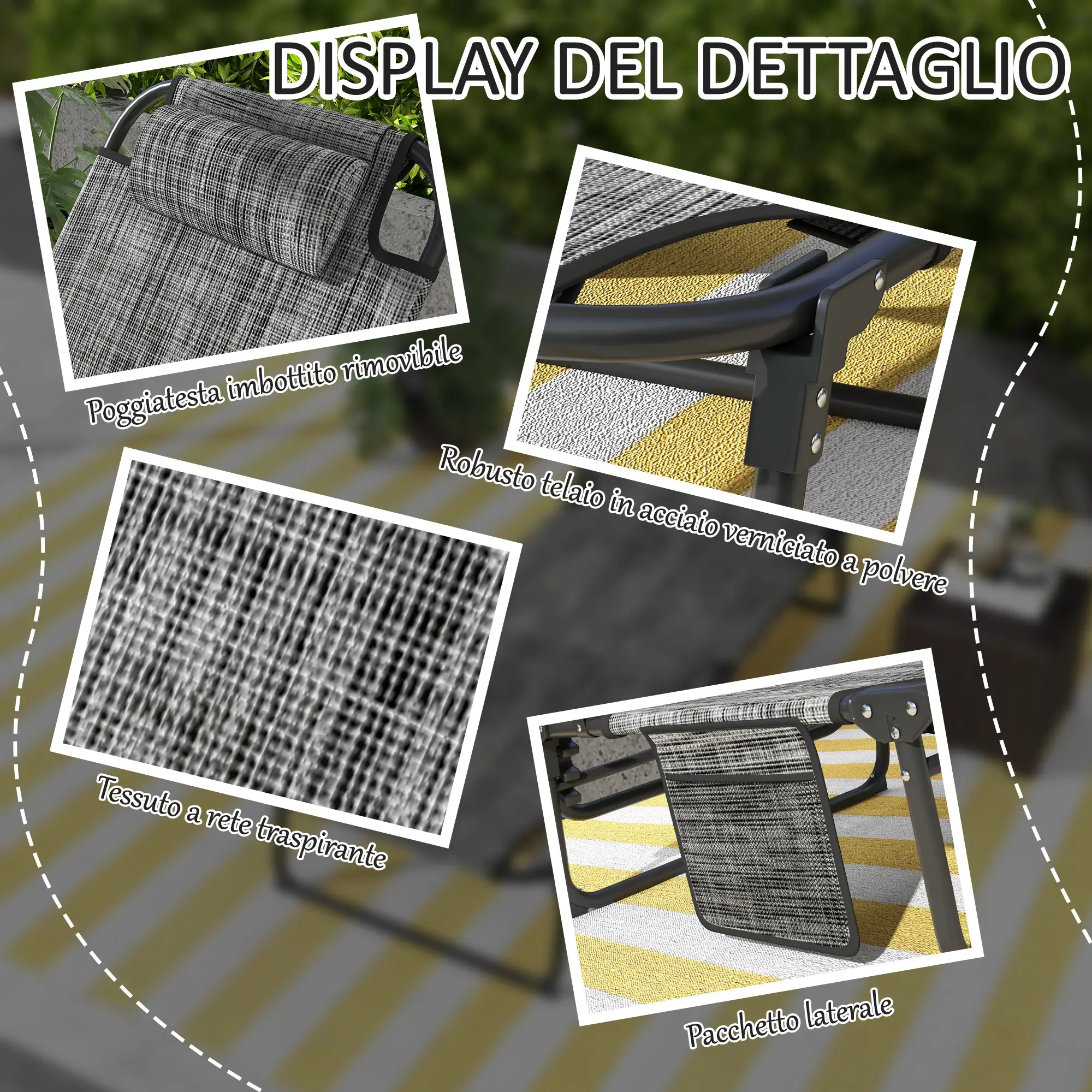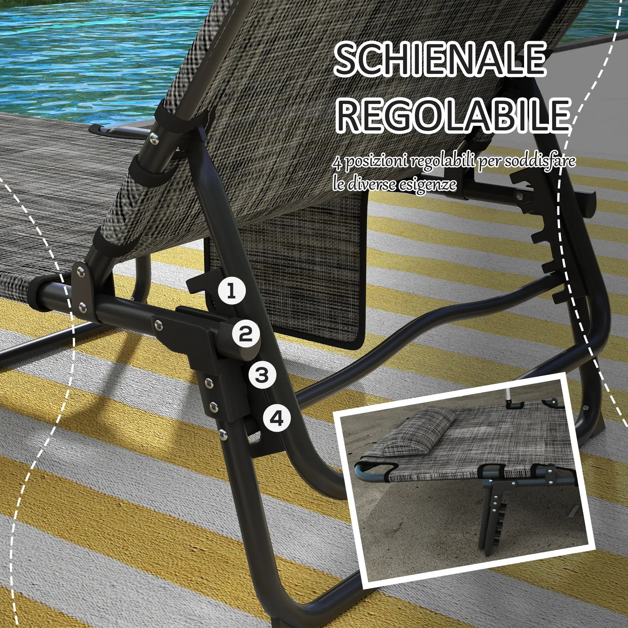 • Lettino sdraio per abbronzarsi o rilassarsi in piscina, in panchina, in cortile