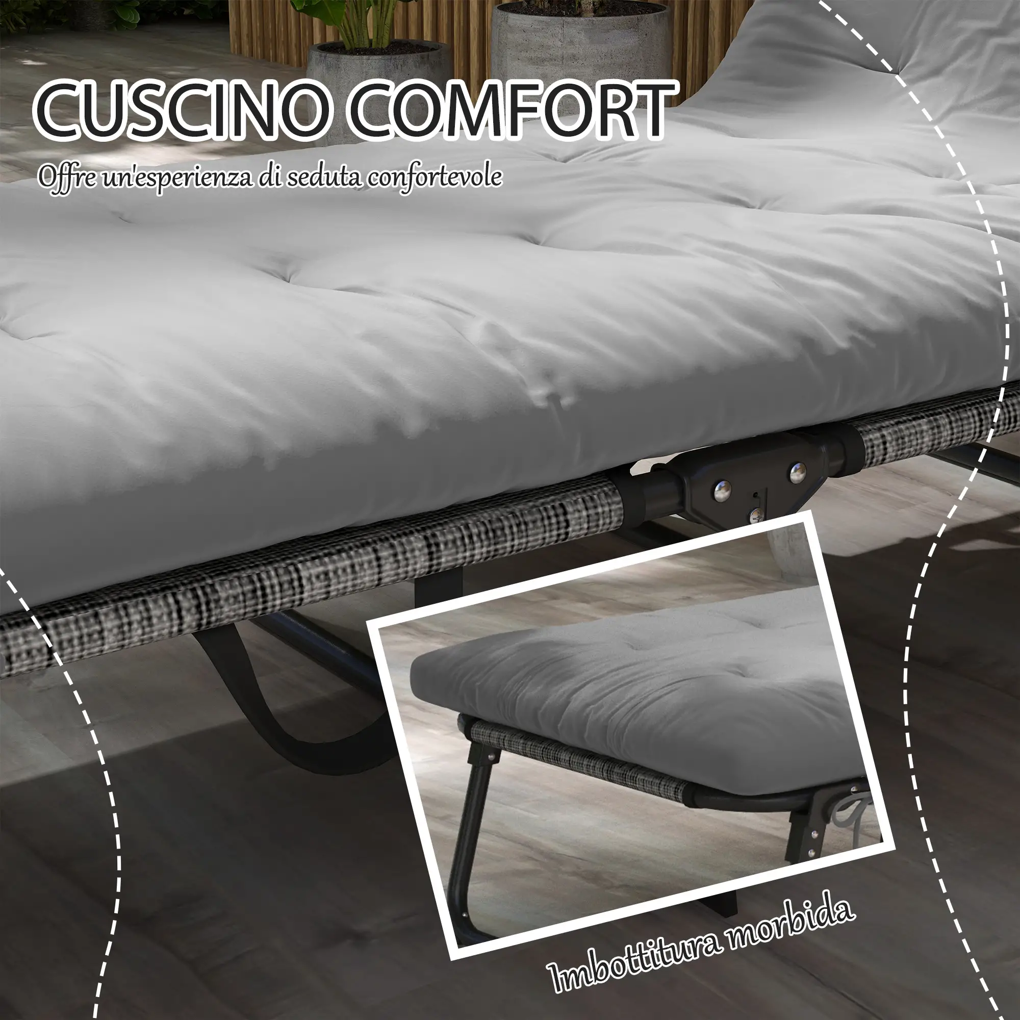 • Lettino da giardino con poggiatesta e cuscino per una seduta confortevole