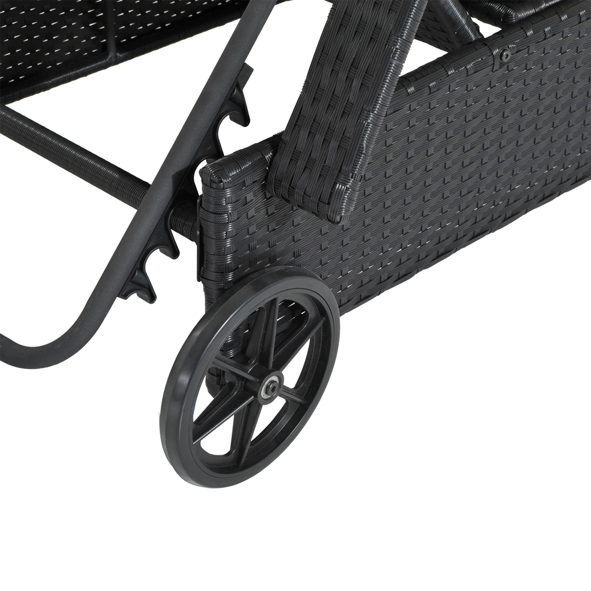 Lettino Prendisole da Giardino con Ruote, Sedia a Sdraio per Spiaggia con Altezza Regolabile in Rattan, Nero e Crema, 2