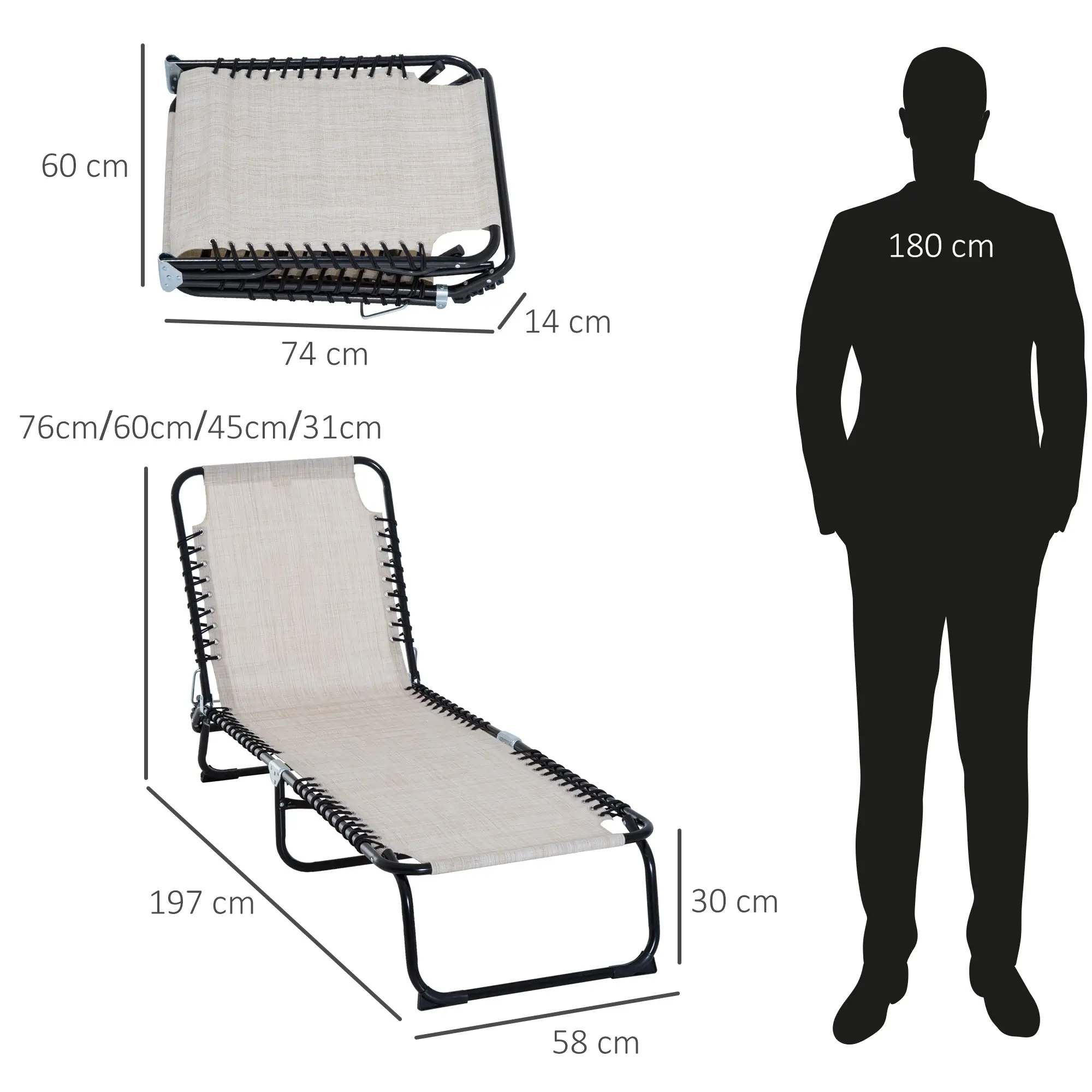 Lettino Prendisole in Acciaio e Tessuto Traspirante con Schienale Reclinabile, 197x58x30 cm