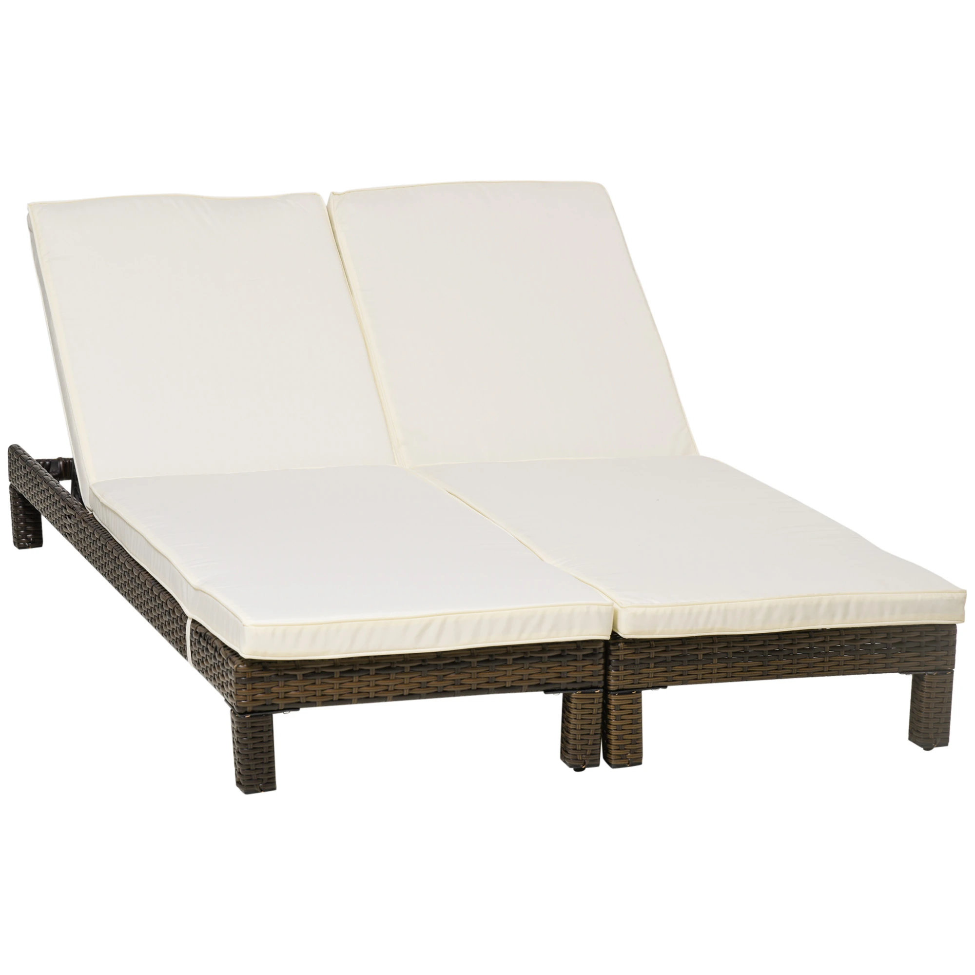 Set 2 Lettini Prendisole in Rattan PE con Cuscino e Schienale 5 Reclinazioni, 196x60x22cm