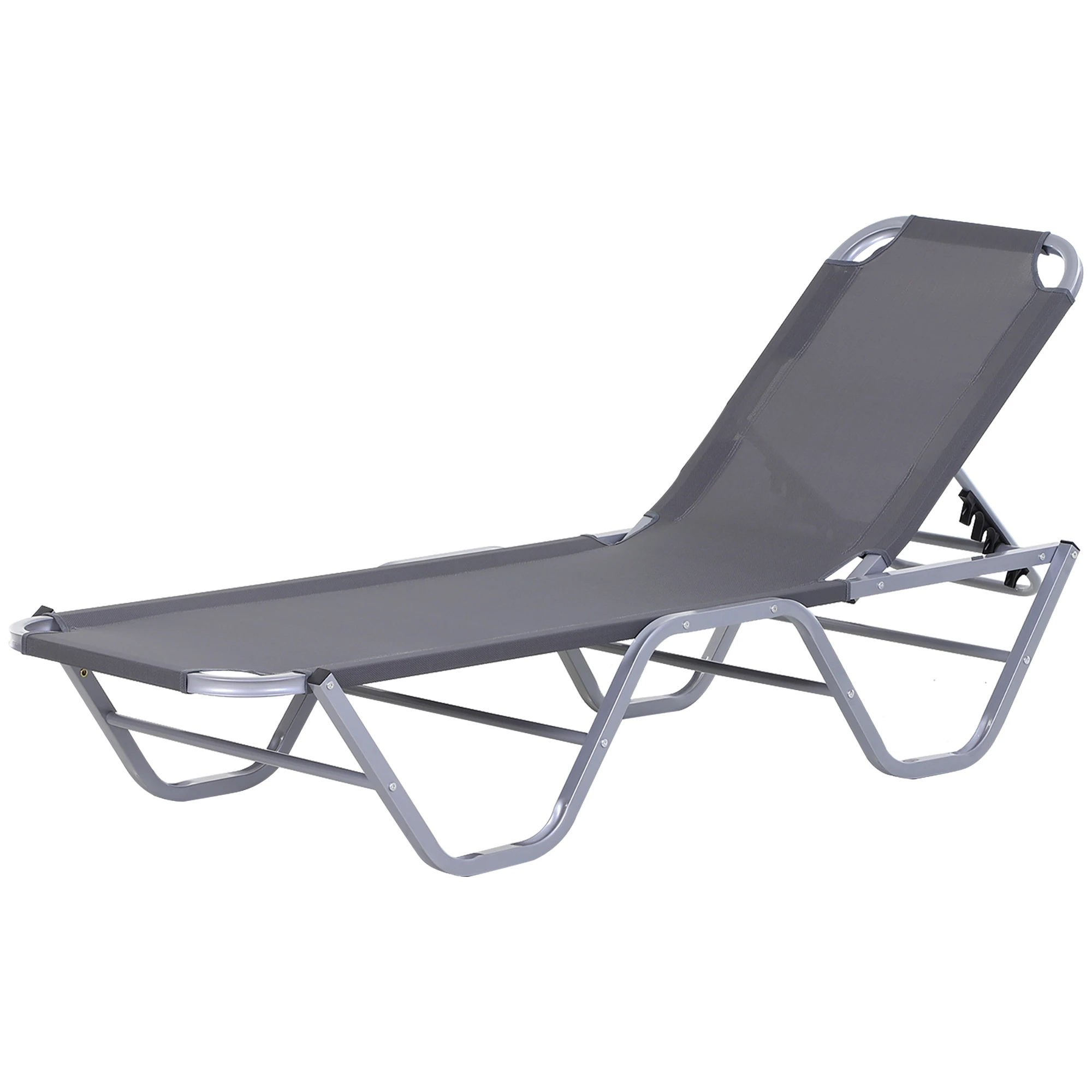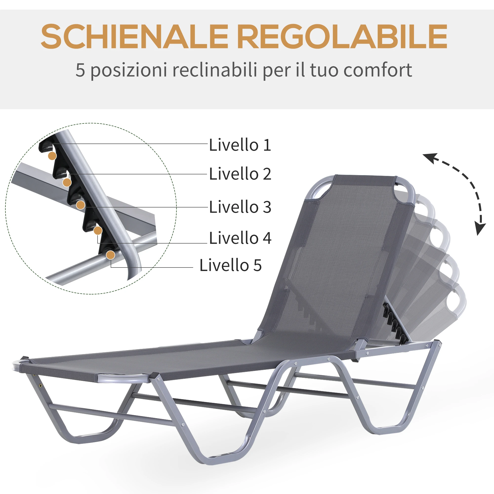 Lettino Prendisole in Alluminio con Schienale Reclinabile a 5 Livelli, 163x58.5x91cm, Argento