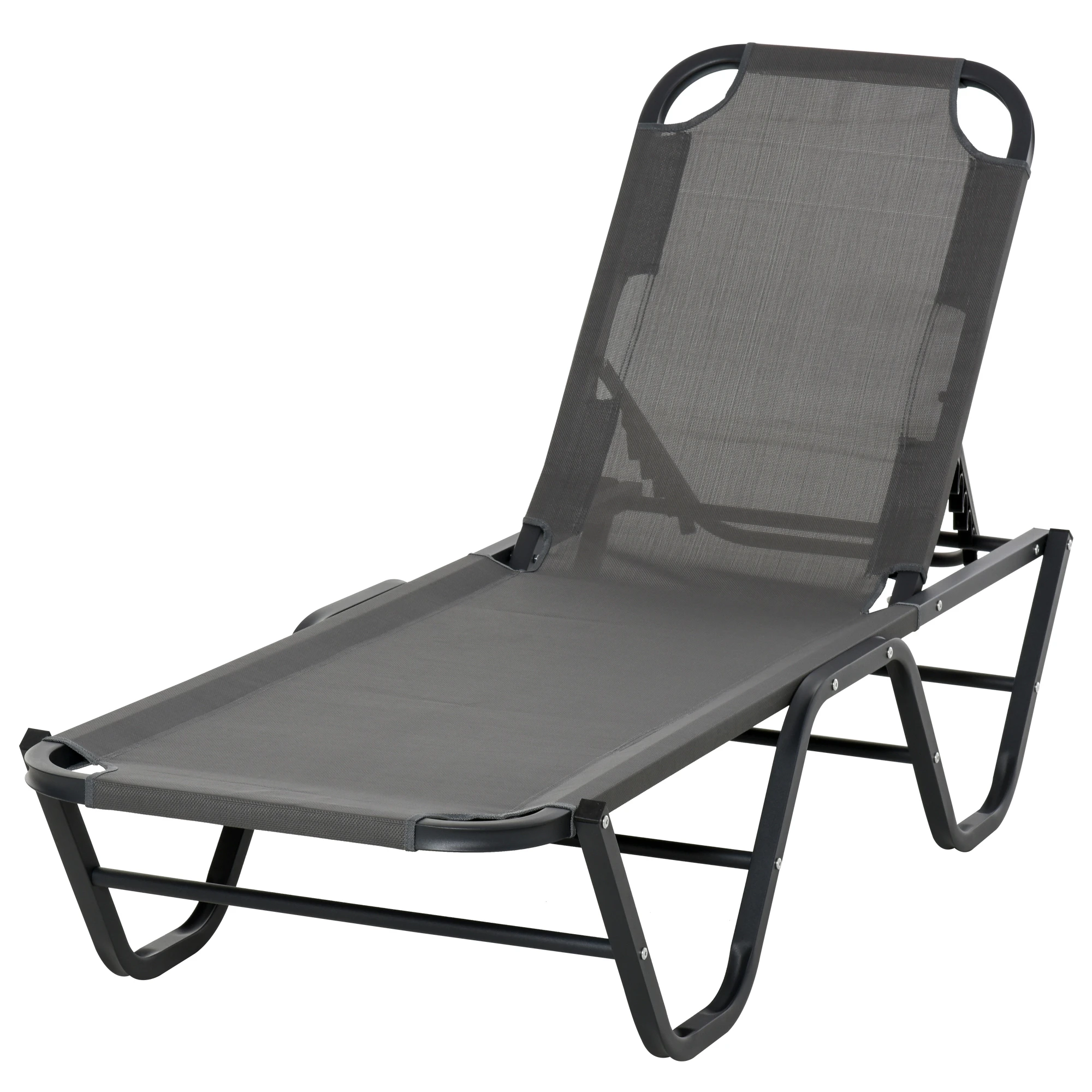 Lettino Prendisole in Alluminio con Schienale Reclinabile a 5 Livelli, 163x58.5x91cm, Grigio