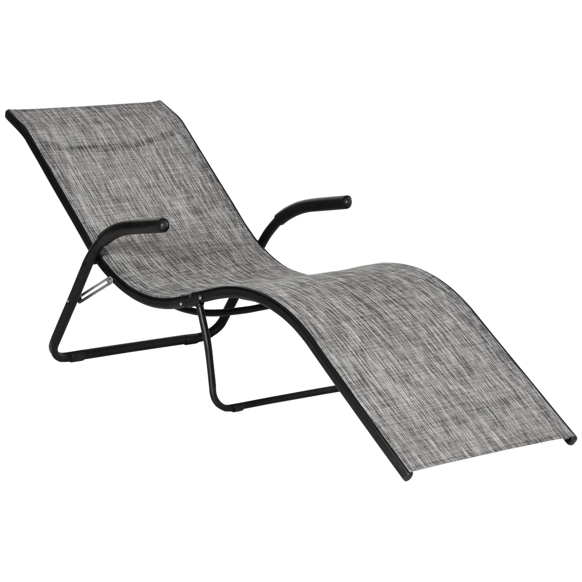 Goditi il tempo libero all'aperto con questa sedia a sdraio relax di ! La combinazione del telaio nero con sedile grigio rende questo lettino prendisole semplice ed elegante, aggiungendo un tocco chic ai tuoi esterni. Il design pieghevole è comodo per l'uso quotidiano e la forma ergonomica del lettino unita ai braccioli assicurano un comfort ottimale. Realizzata in tubo di metallo e tessuto a rete traspirante, la chaise longue ti accompagna in ogni momento di relax.