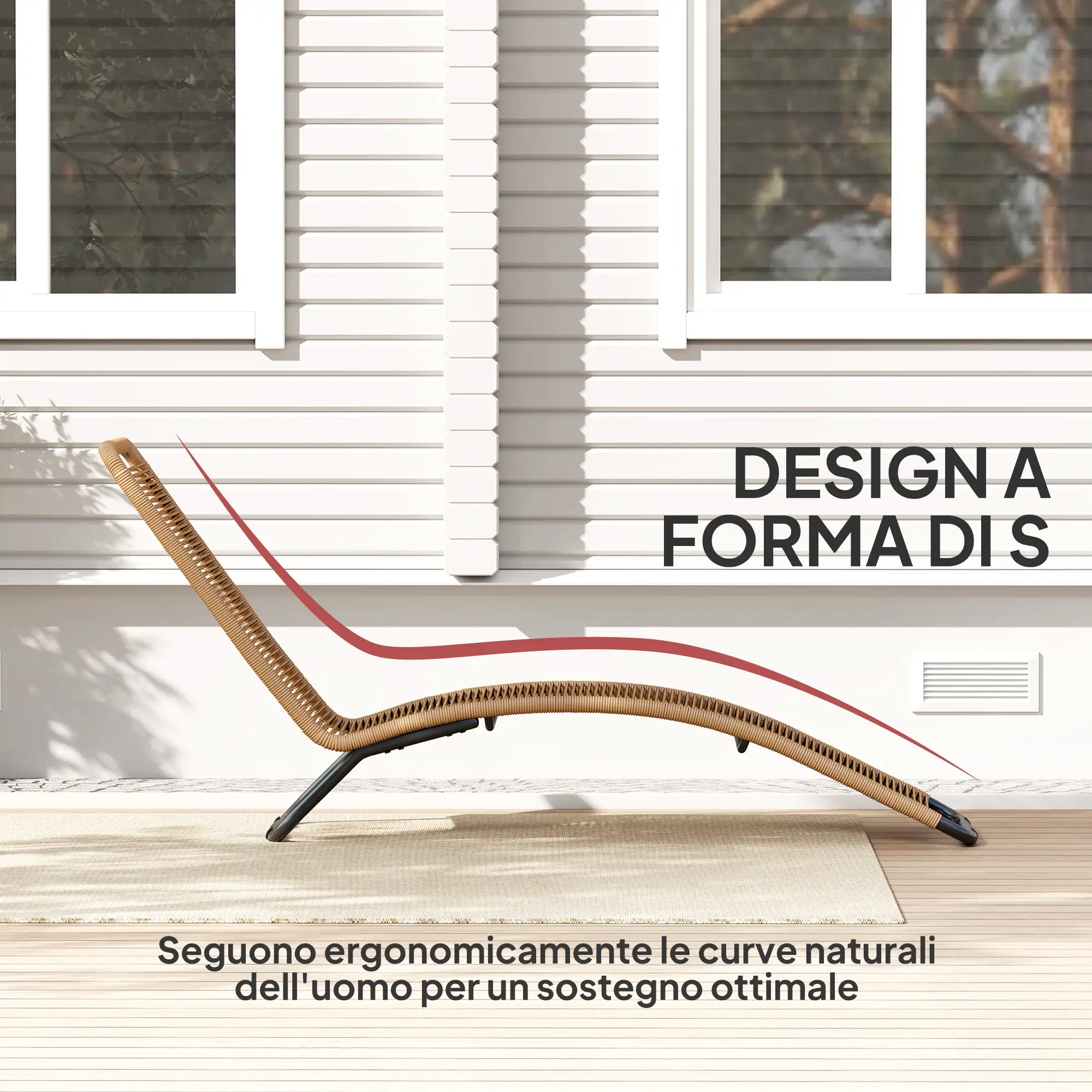 Goditi il relax all'aperto sul nostro elegante lettino sdraio in rattan. La struttura a forma di S segue la forma della tua schiena, garantendo un comfort di qualità ed ergonomico. Realizzato in solido rattan PE, il supporto combina stile e resistenza per arricchire qualsiasi spazio all'aperto nei prossimi anni. La base in acciaio verniciato a polvere assicura solidità e sostegno costante, per lasciarti godere momenti di puro benessere sotto il sole in sicurezza.