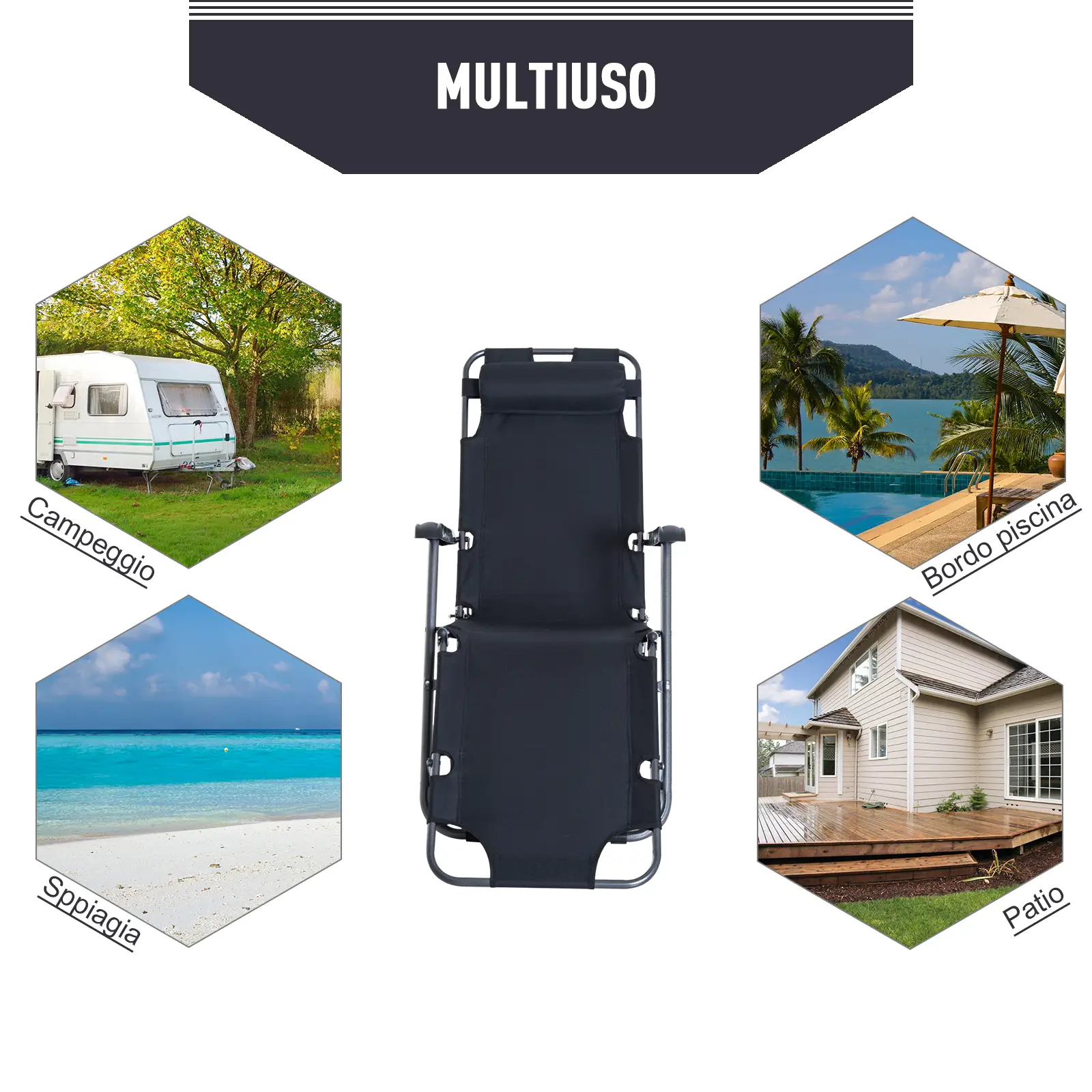 • Schienale reclinabile per trasformare la sdraio in un lettino o in una chaise longue