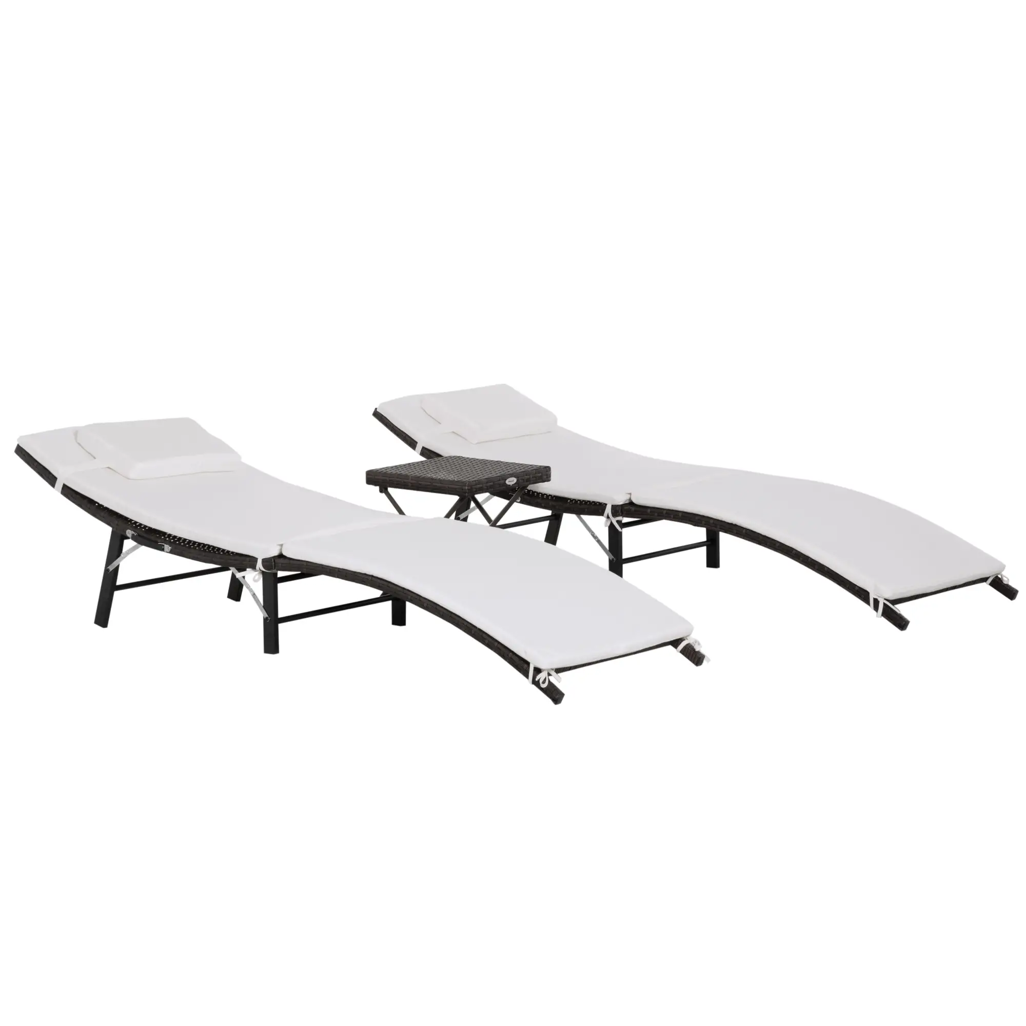 Lettini Prendisole Richiudibili con Cuscini Rimovibili e Tavolino Pieghevole, Set 3 Pz in Rattan, Crema
