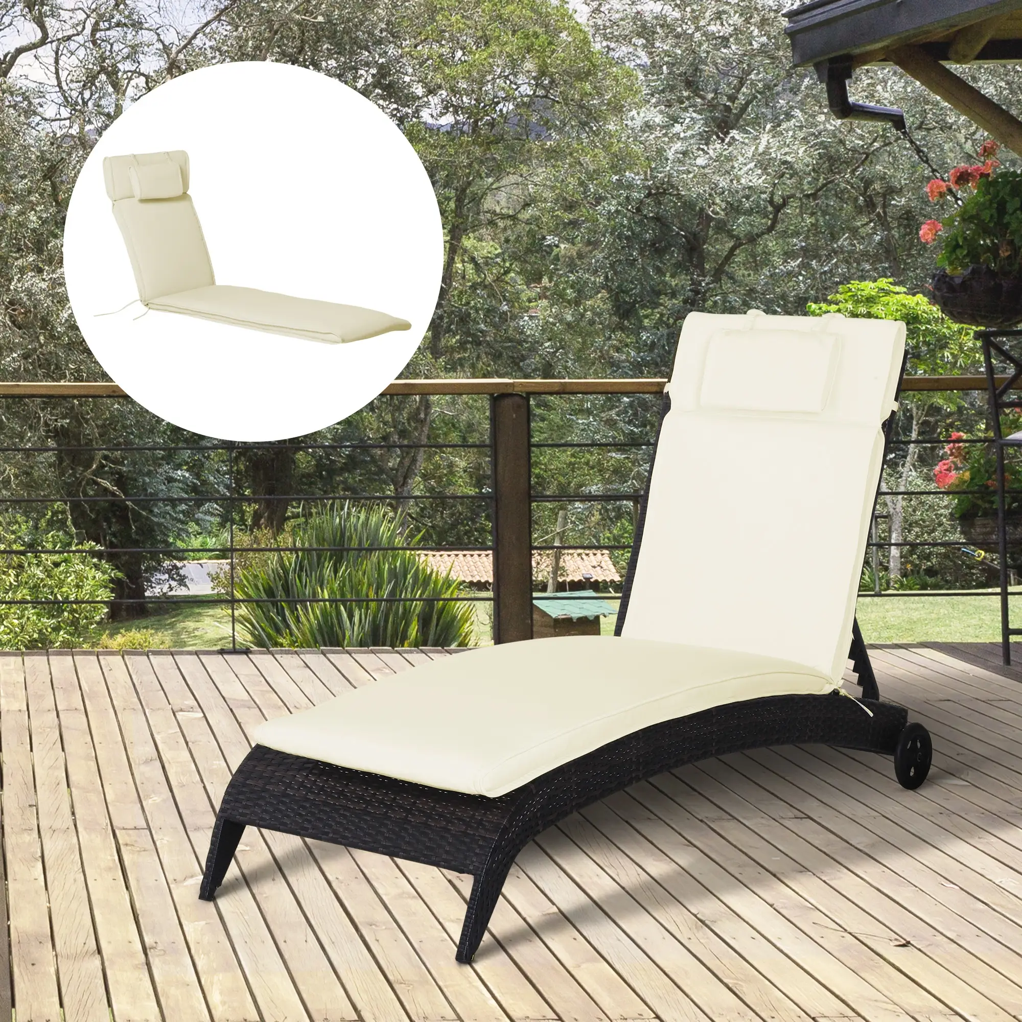 Cuscino per Lettino Prendisole con Rivestimento Poliestere Sfoderabile, 188x53x8cm, Bianco Crema