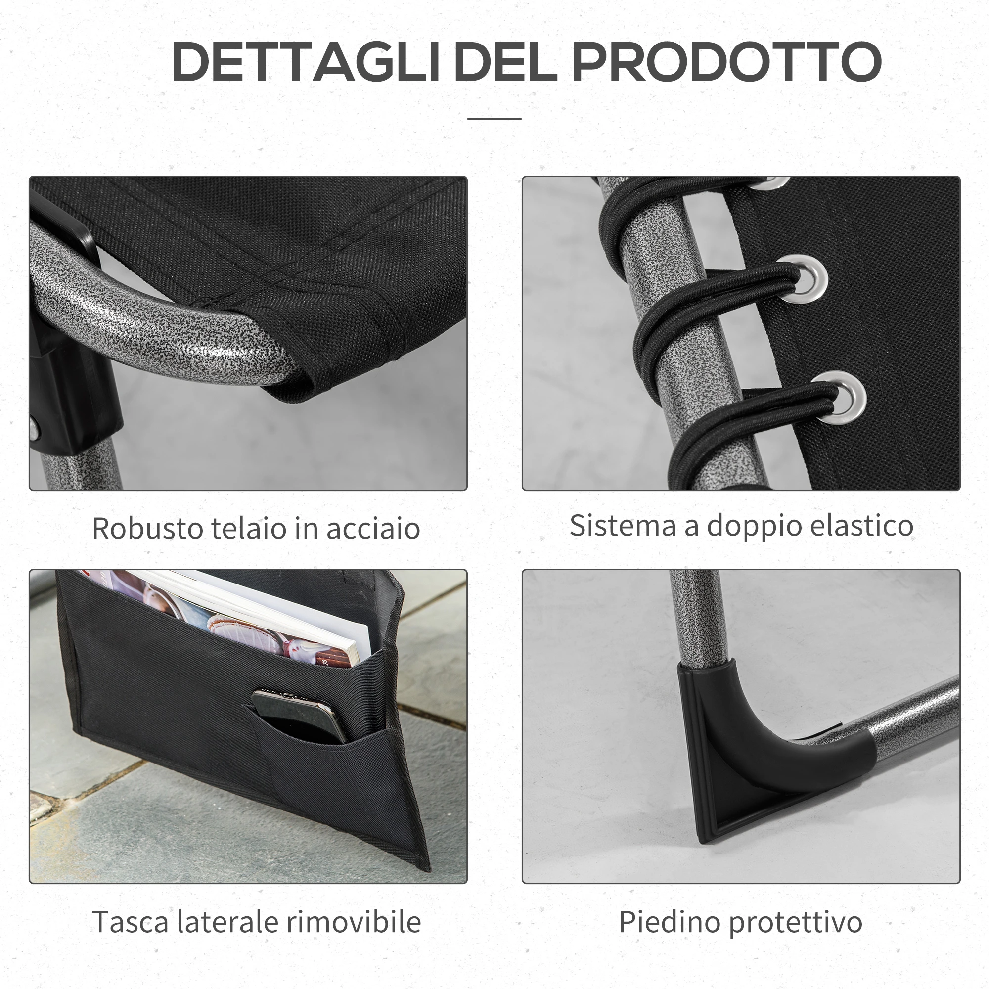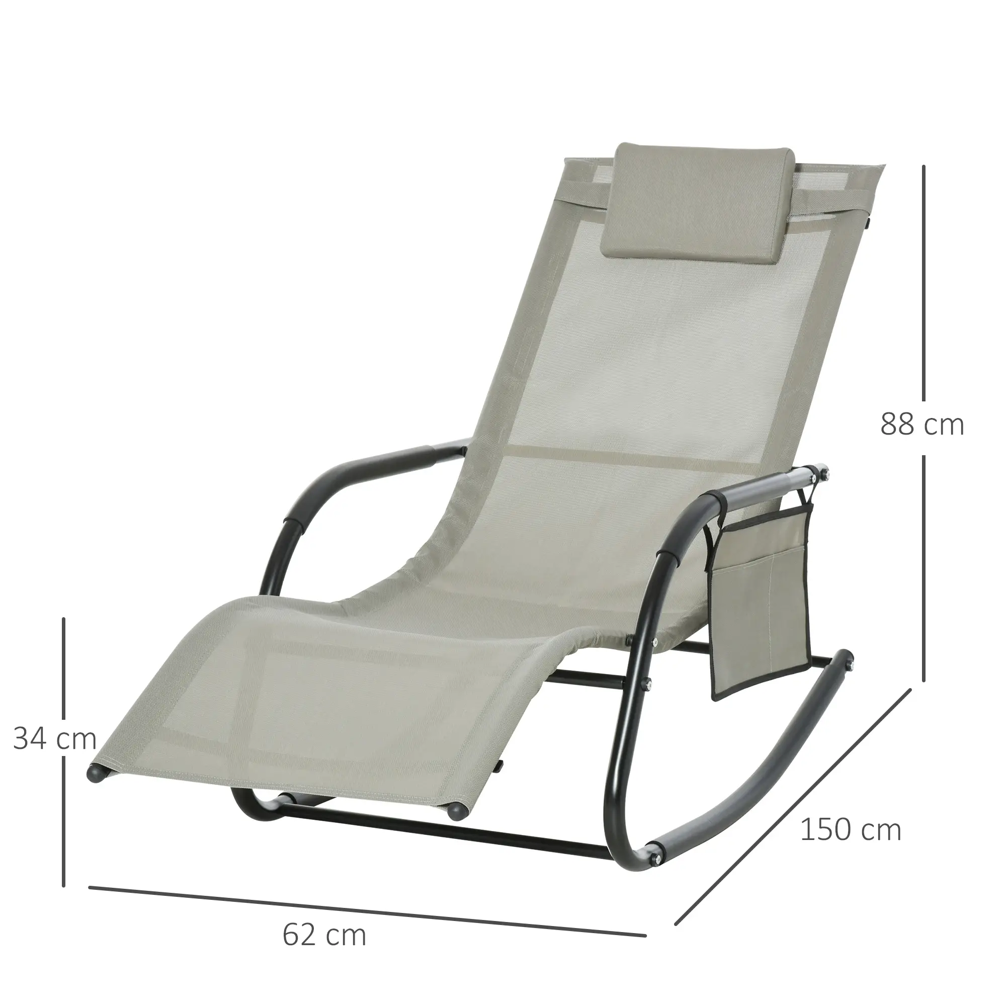 Poltrona a Dondolo da Giardino con Poggiatesta e Tasca Laterale, 150x62x88 cm, Nero e Grigio