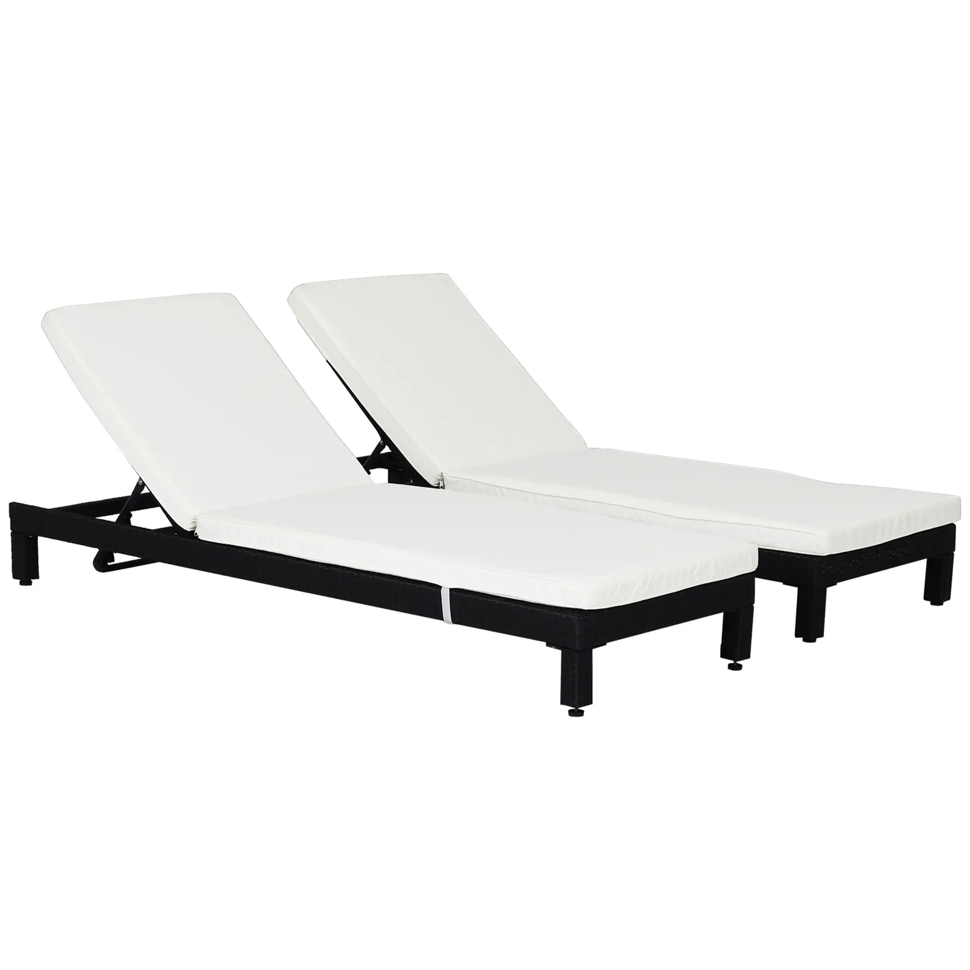 Set 2 Sdraio da Giardino Cuscino Imbottito Regolabile su 6 Livelli in Rattan 196 x 65 x 22 cm, Nero