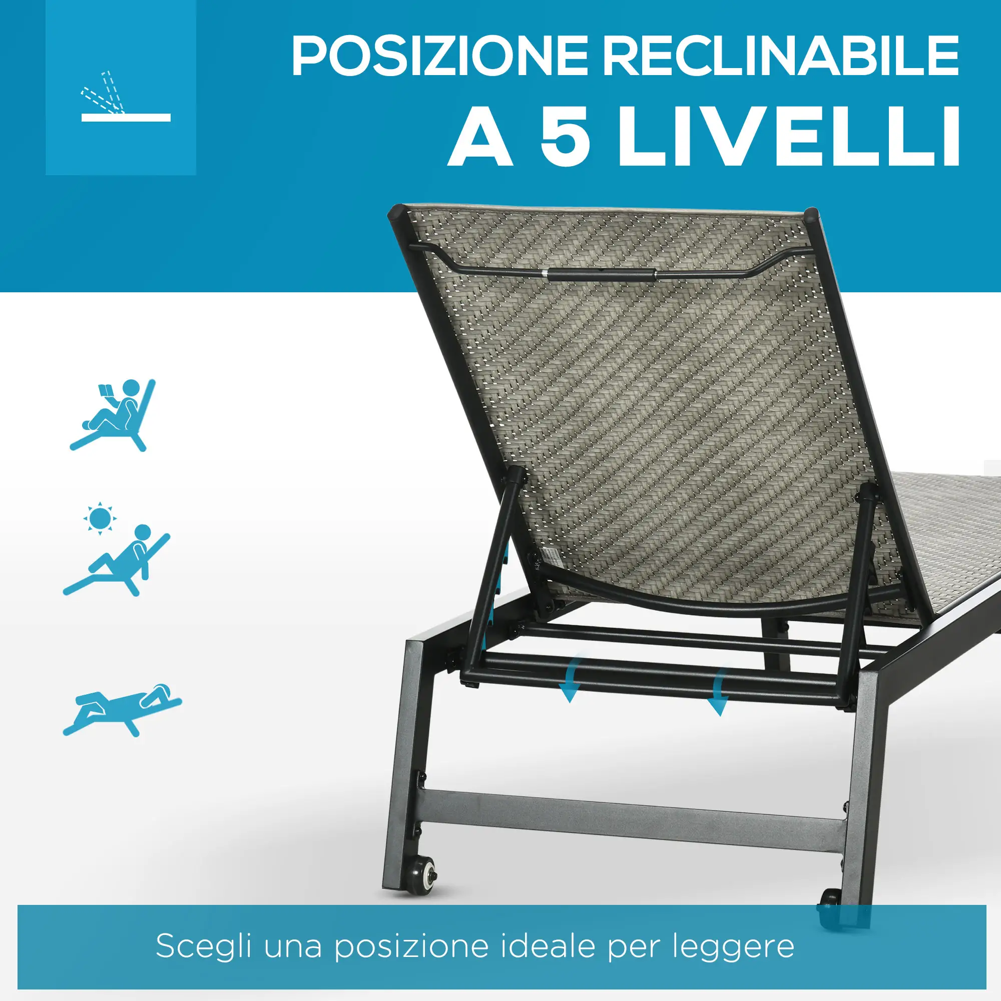 Lettino Sdraio Pieghevole e Reclinabile in 5 Posizioni con Rotelle, in Metallo e Textilene, 72x158x84 cm, Grigio