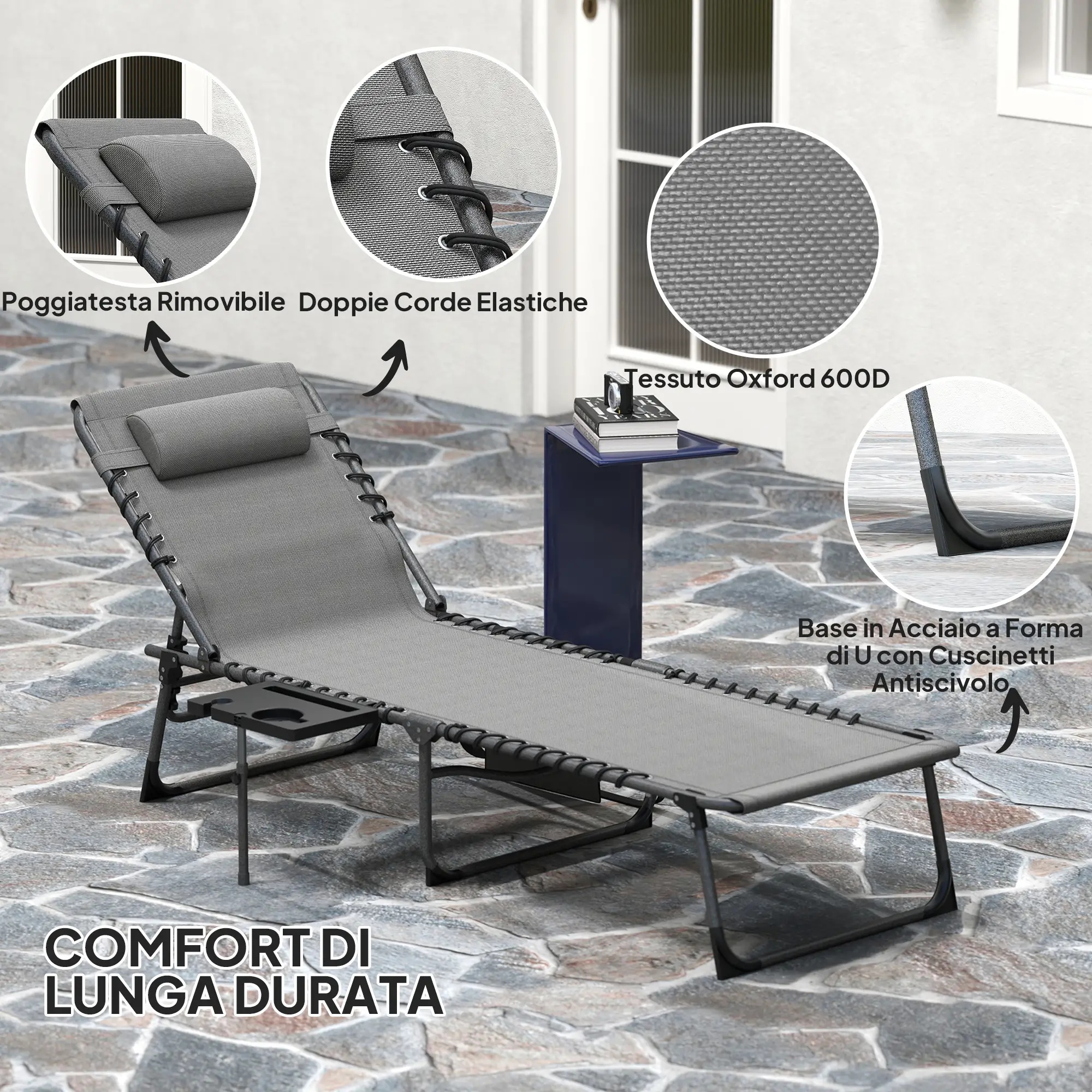 • Sdraio da esterno con cuscino imbottito per supportare collo e testa