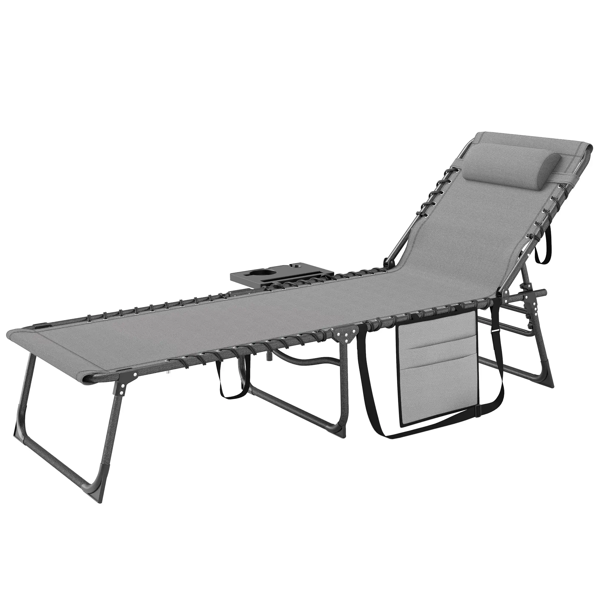 Sdraio da Giardino Pieghevole e Reclinabile a 5 Livelli con Tavolino Laterale e Tasca, 60x190x31 cm, Grigio e Nero