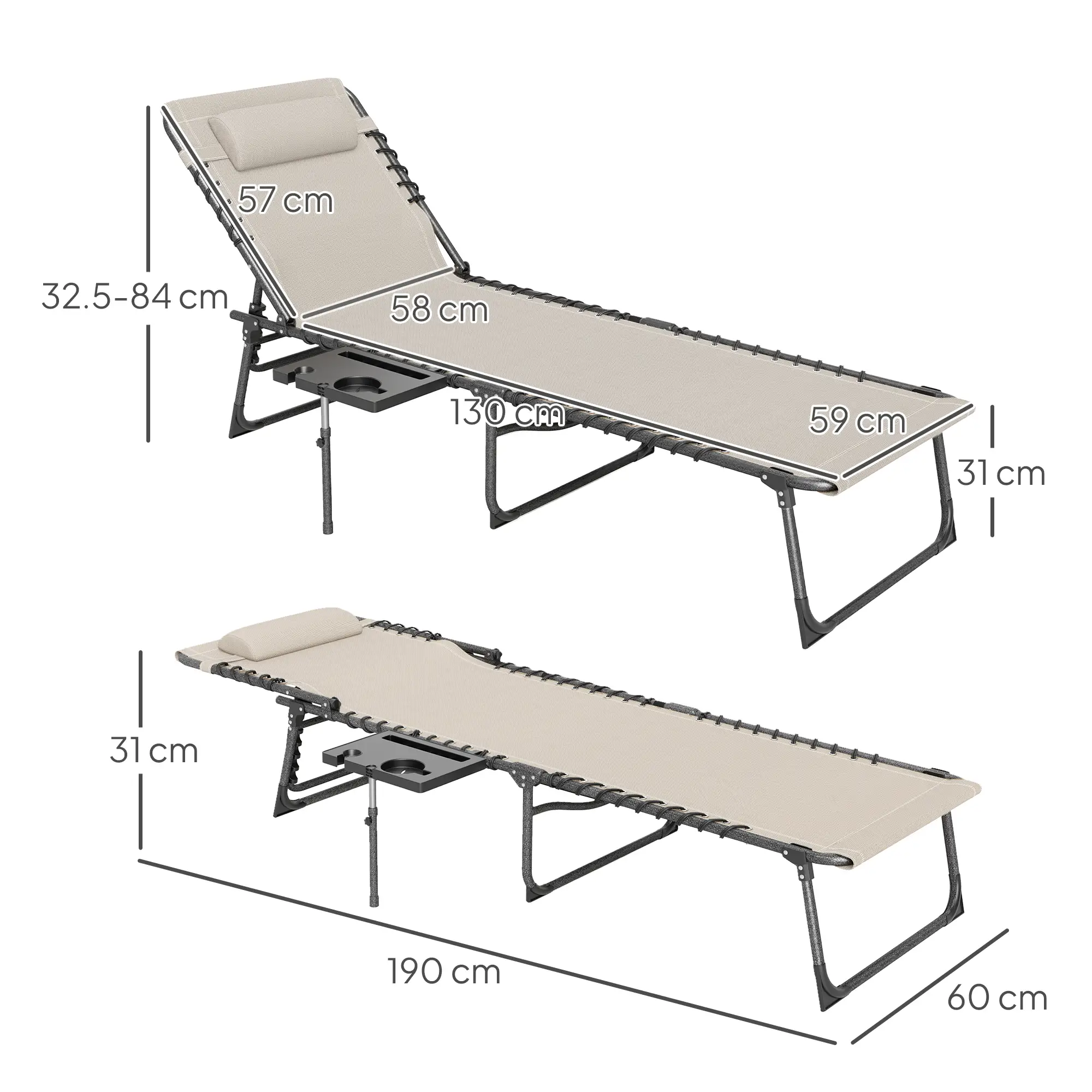 Sdraio Pieghevole e Reclinabile a 5 Livelli con Tavolino Laterale e Tasca, 60x190x31 cm, Crema
