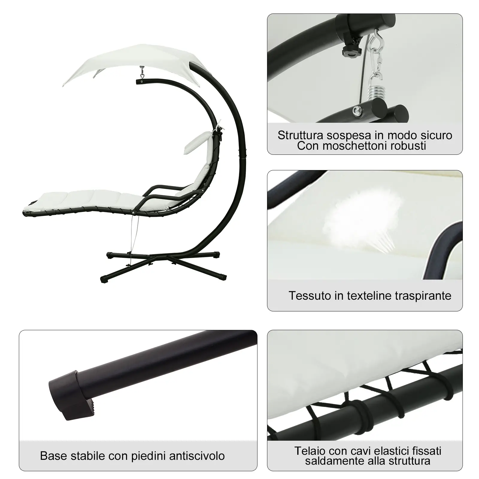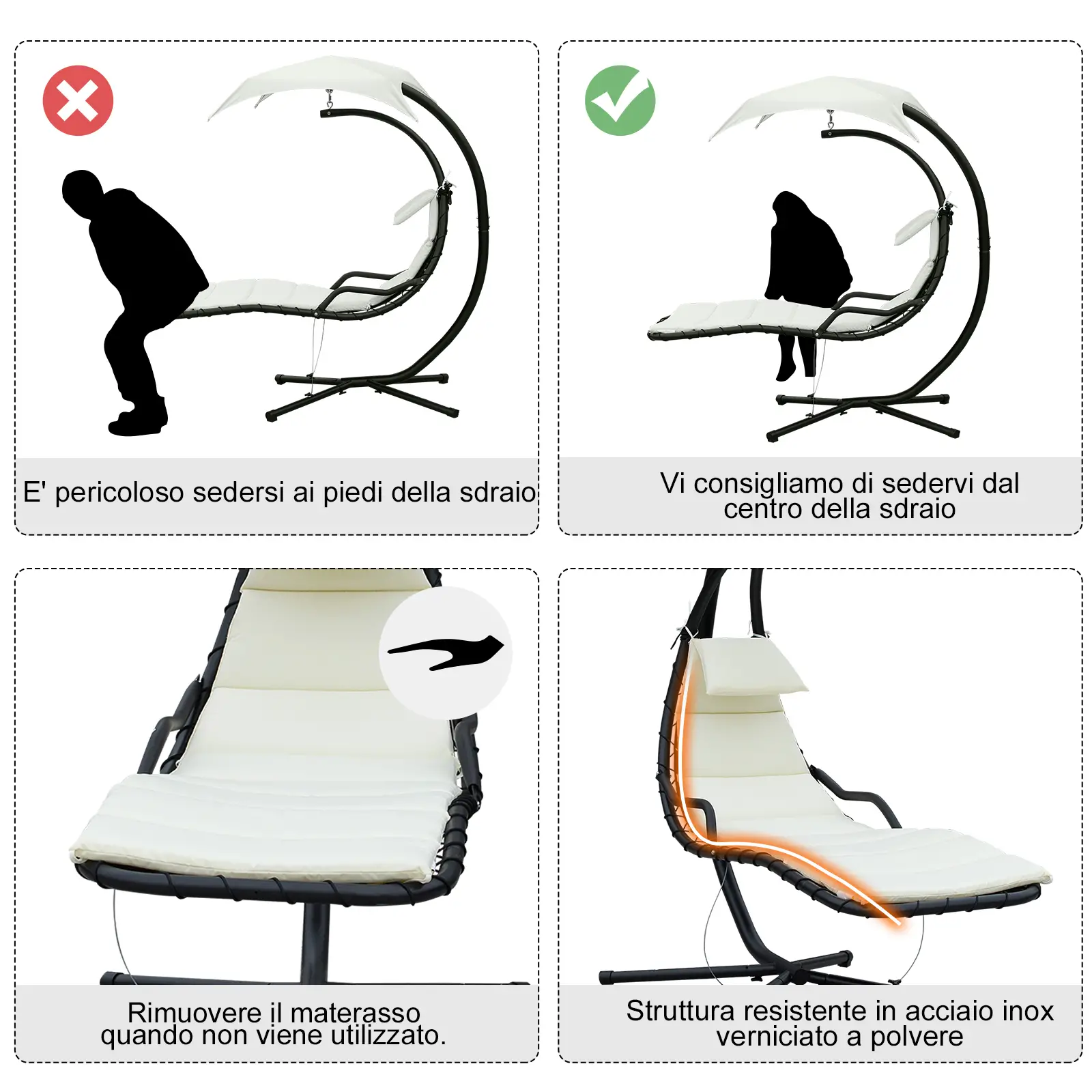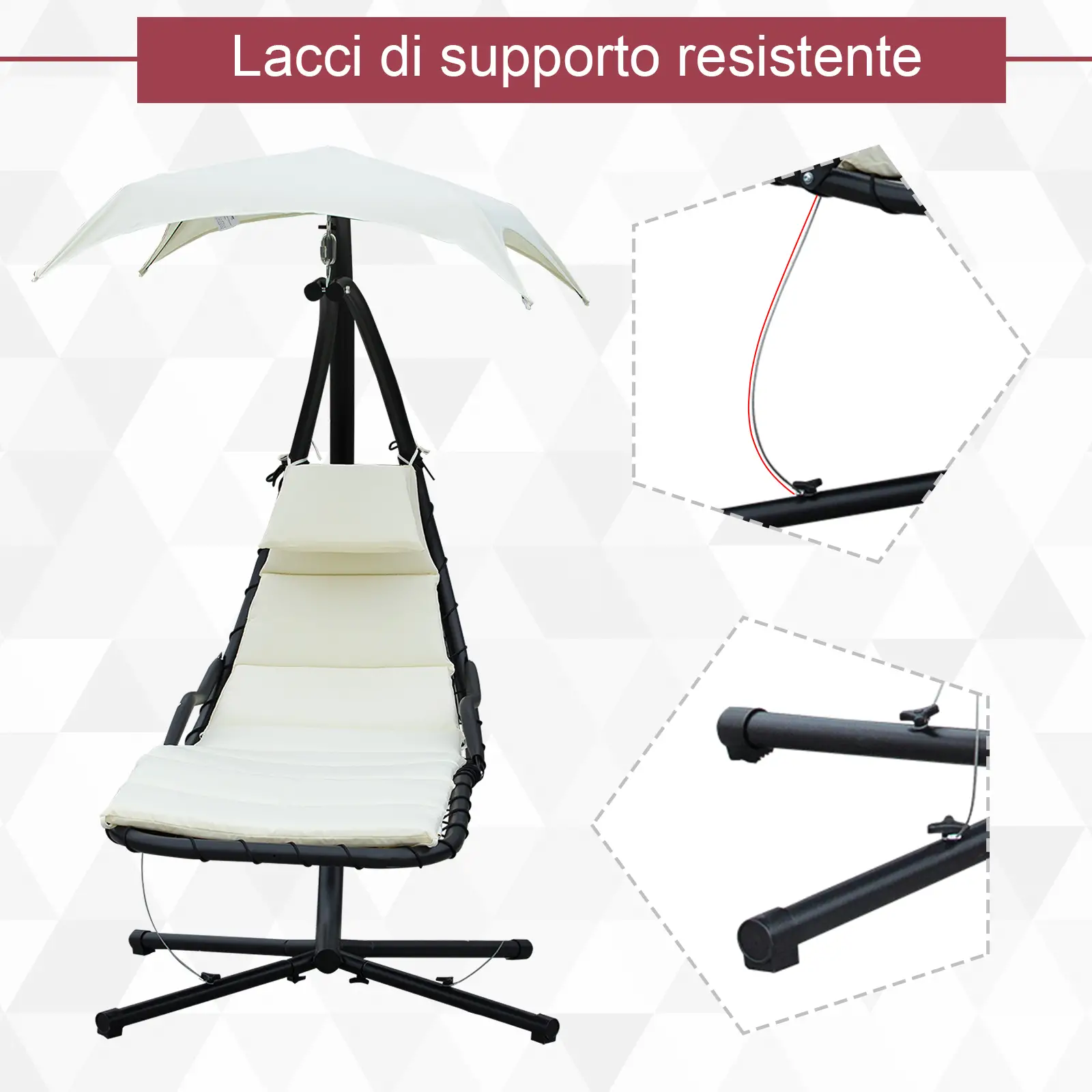 Sdraio Sospesa da Giardino, Lettino Sospeso Imbottito per Esterno con Tettuccio, Crema 190x115x190cm