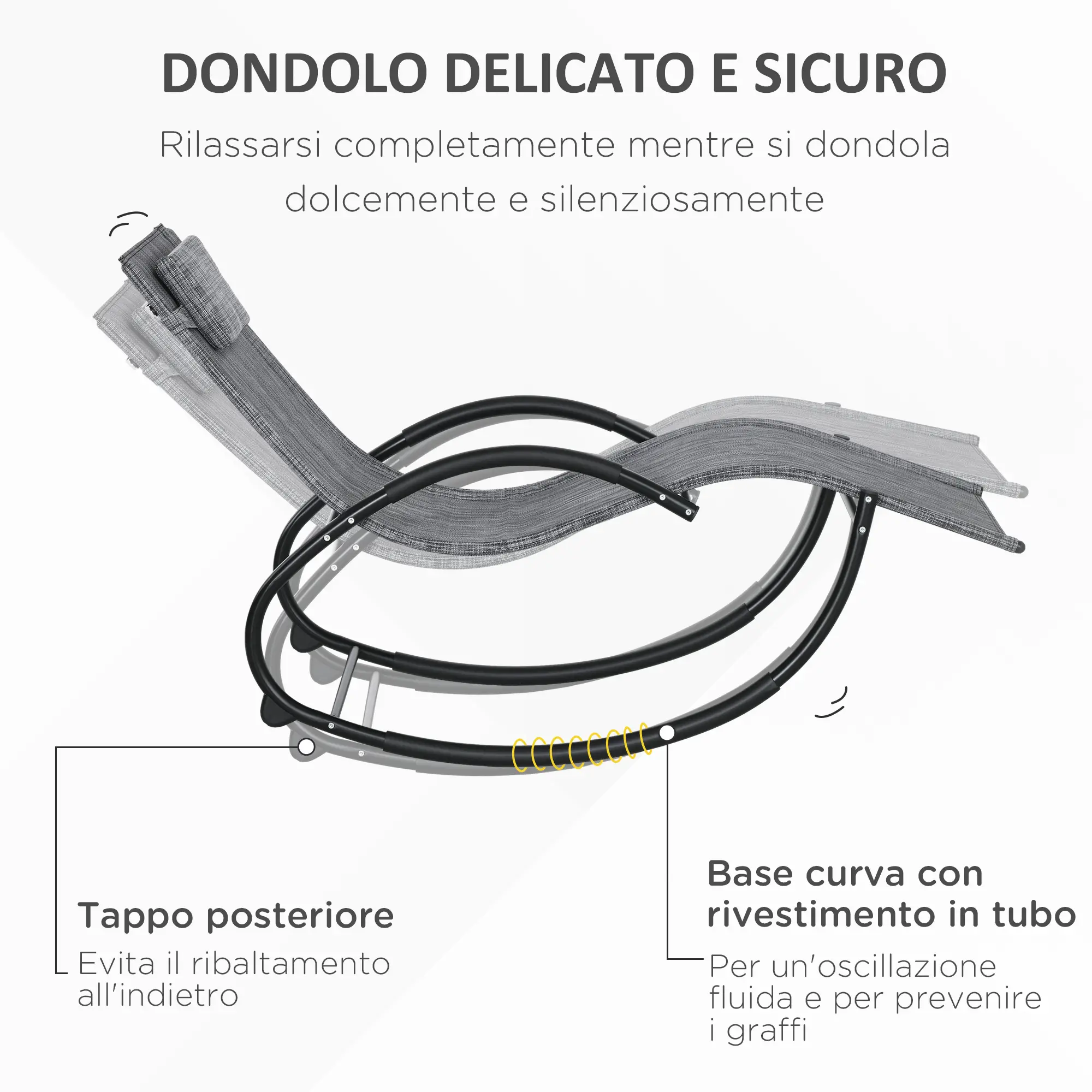 • Sdraio a dondolo dal design ergonomico e zero-gravity, ideale da usare in giardino, a bordo piscina e altri spazi esterni