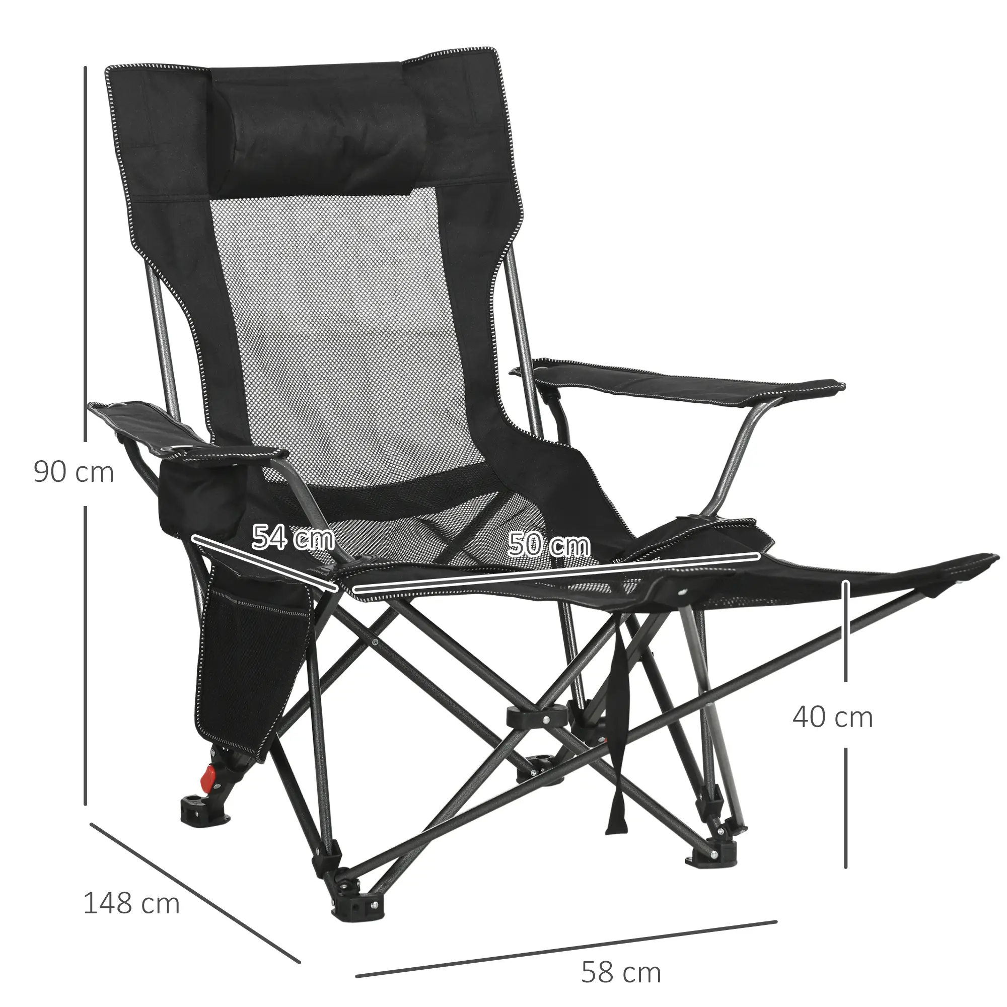 Sedia Sdraio da Campeggio Reclinabile e Pieghevole con Poggiapiedi, 58x148x90cm, Nero
