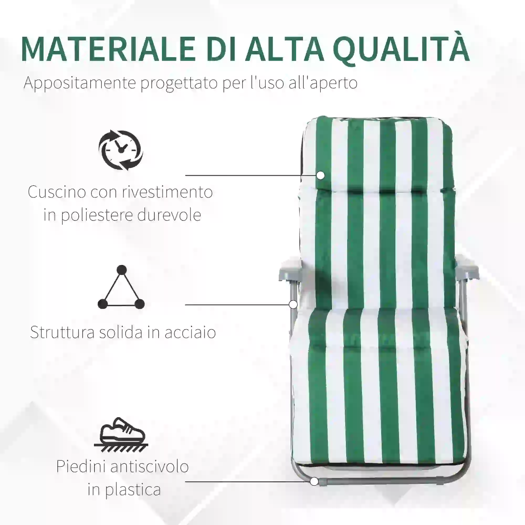 Sedia Sdraio da Spiaggia da 2 Pezzi Pieghevole e Reclinabile, Lettini Prendisole da Giardino con Cuscino Imbottito, Ver