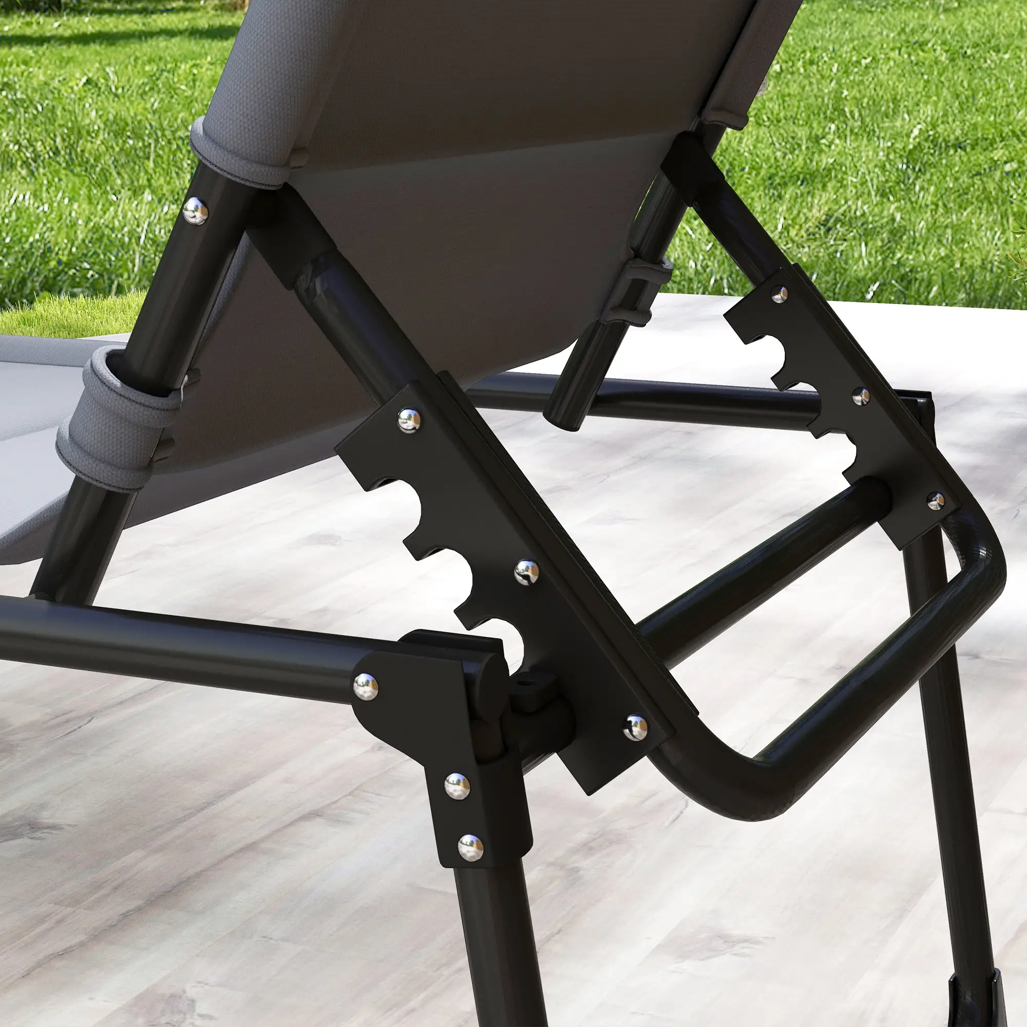 Set 2 Lettini Prendisole Reclinabili ad Altezza Regolabile, 70x201.5x45 cm, Nero Grigio