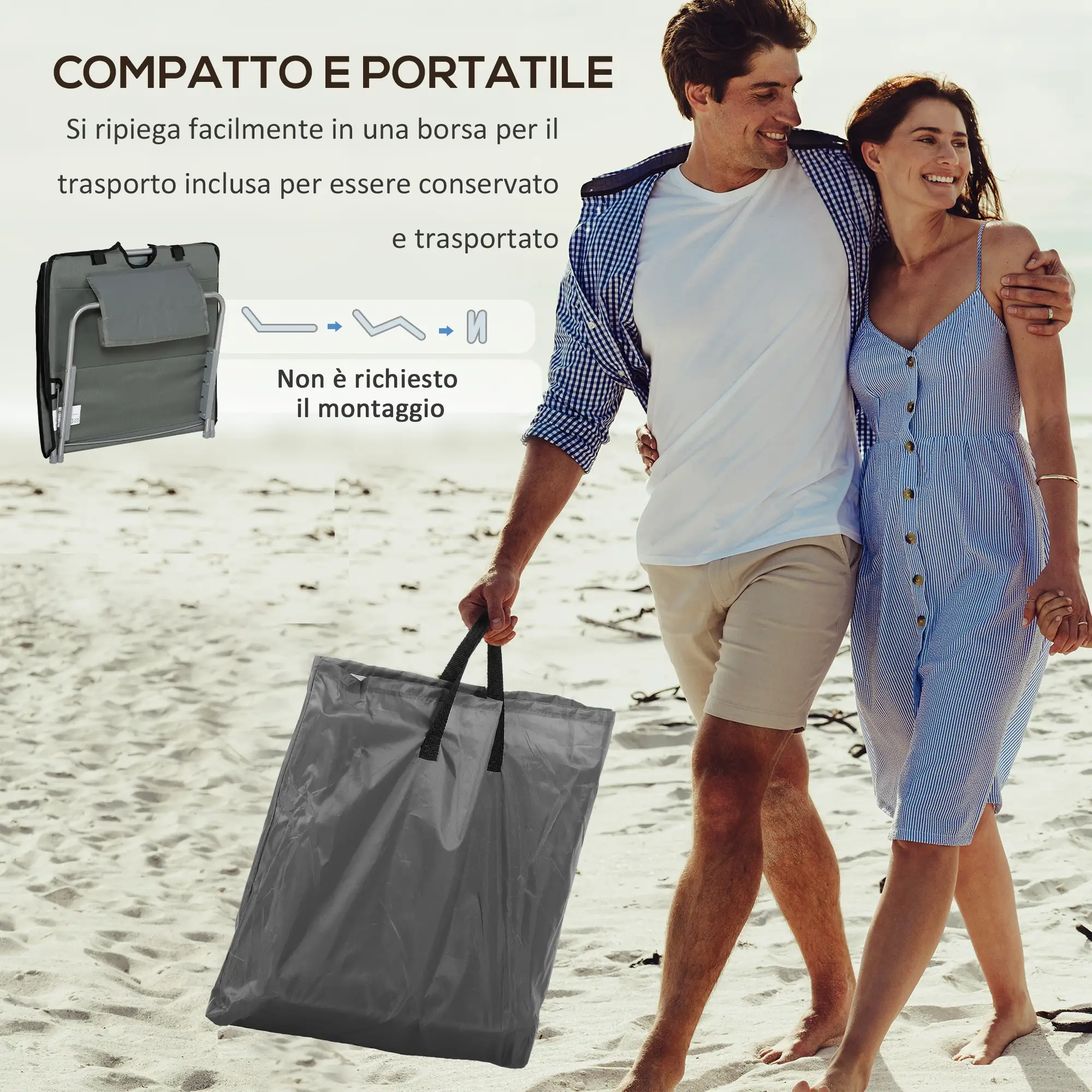 Set 2 Lettini Spiaggia Pieghevoli con Schienale Regolabile a 5 Livelli e Borsa, Grigio