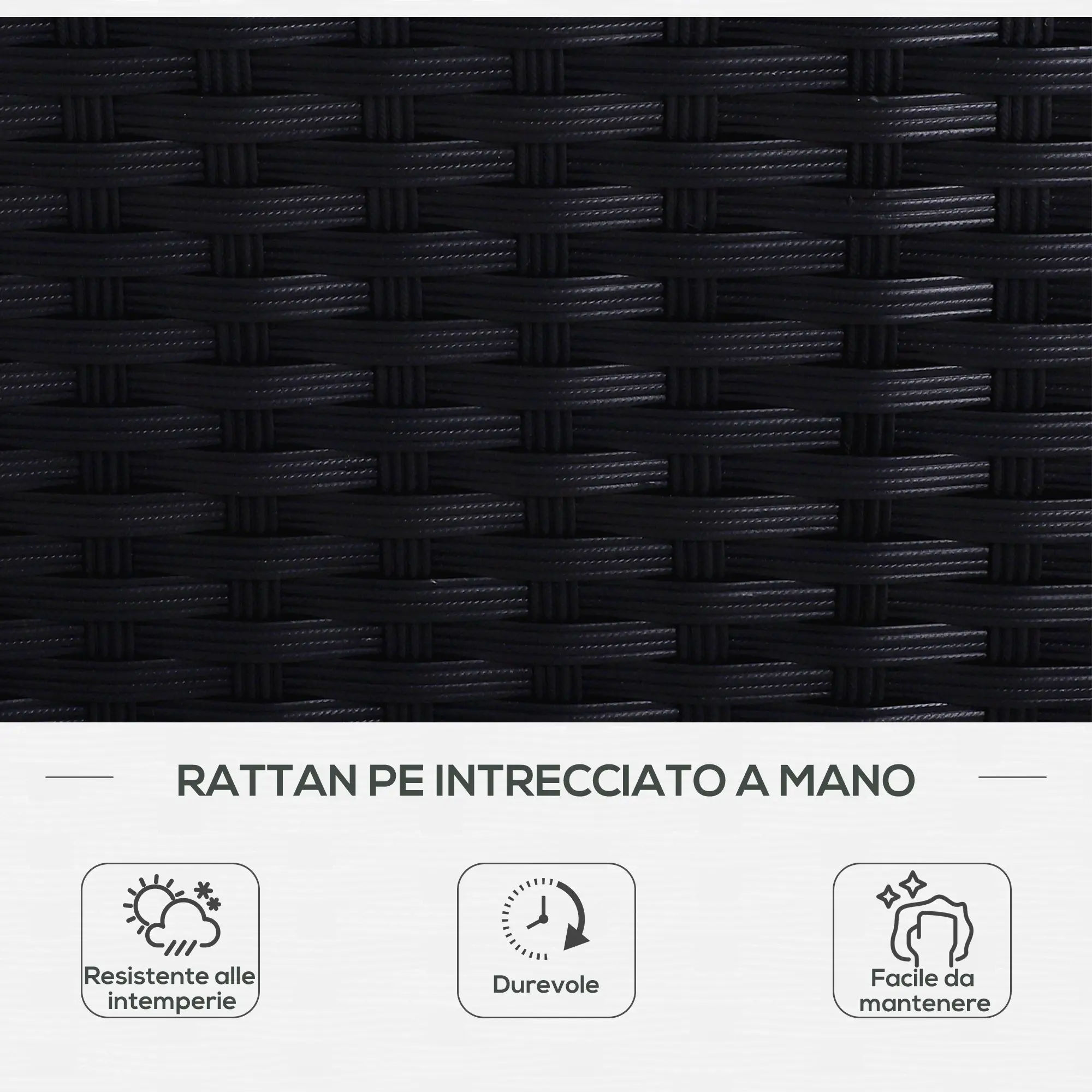 • Materiale: Telaio in acciaio, Rattan, PE
