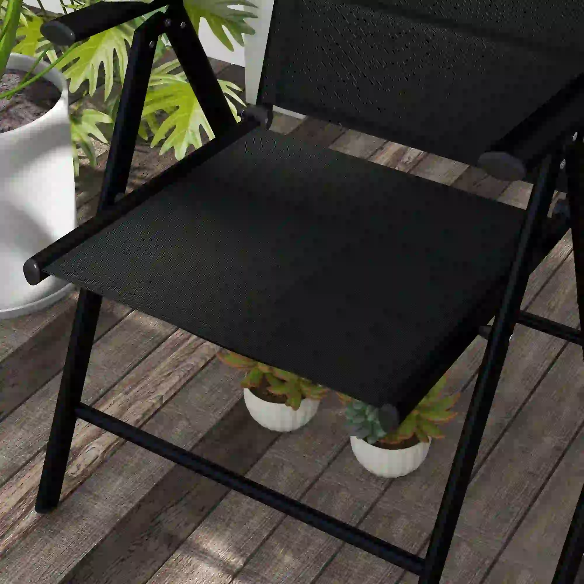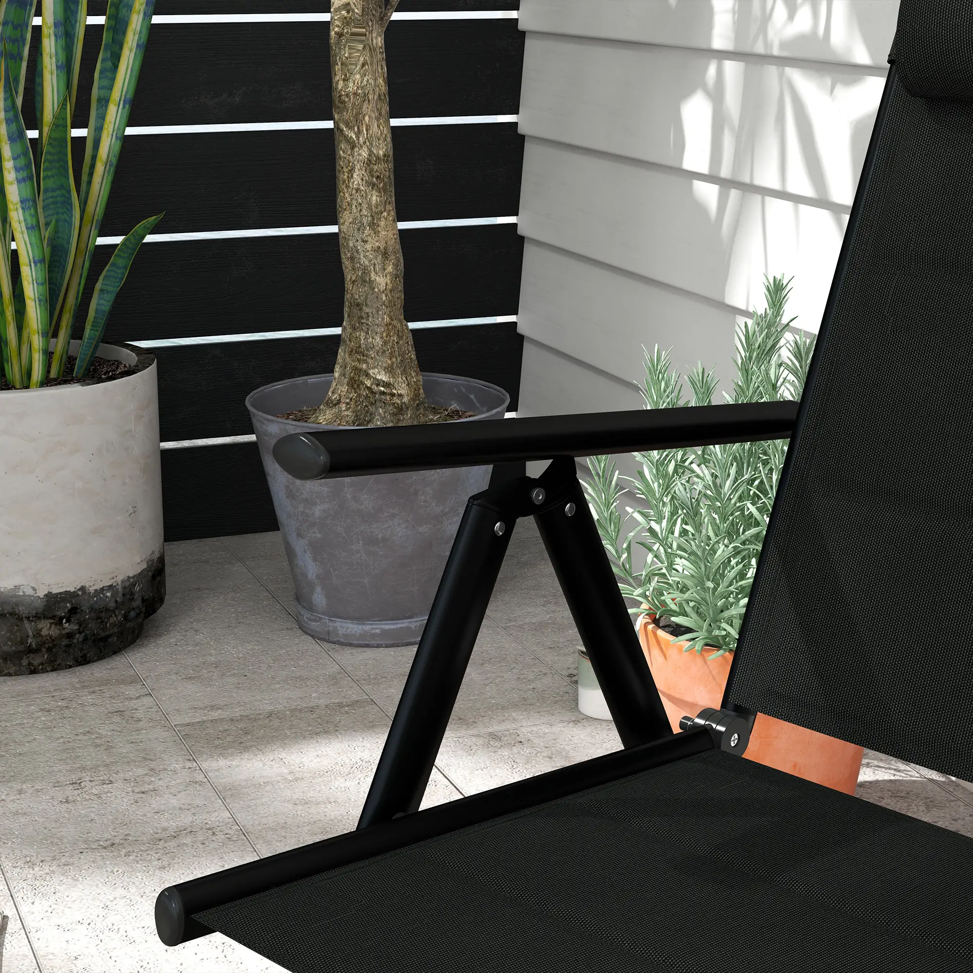 Set 2 Sedie Pieghevoli con Schienale Reclinabile e Poggiatesta, in Alluminio e Poliestere, 54x67x108 cm, Nero