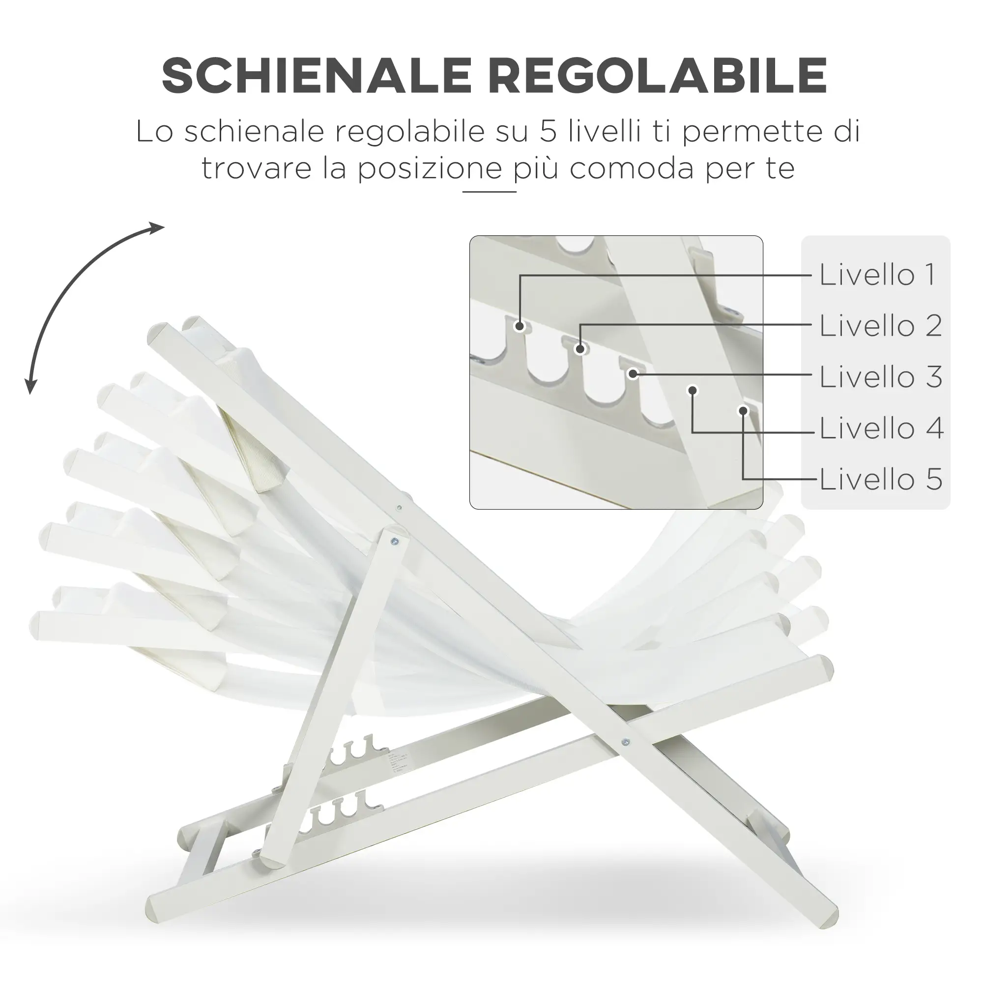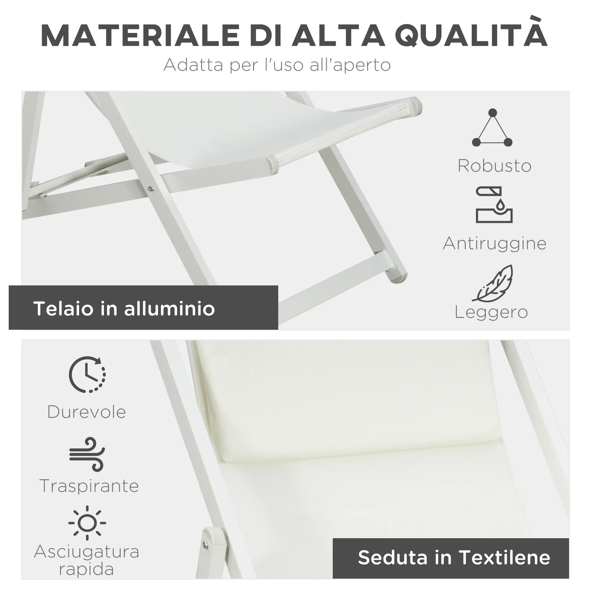 Set 2 Sedie Poltrona Sdraio da Esterni Pieghevoli e Reclinabili in Alluminio, 96.5x58x91.5 cm, Beige