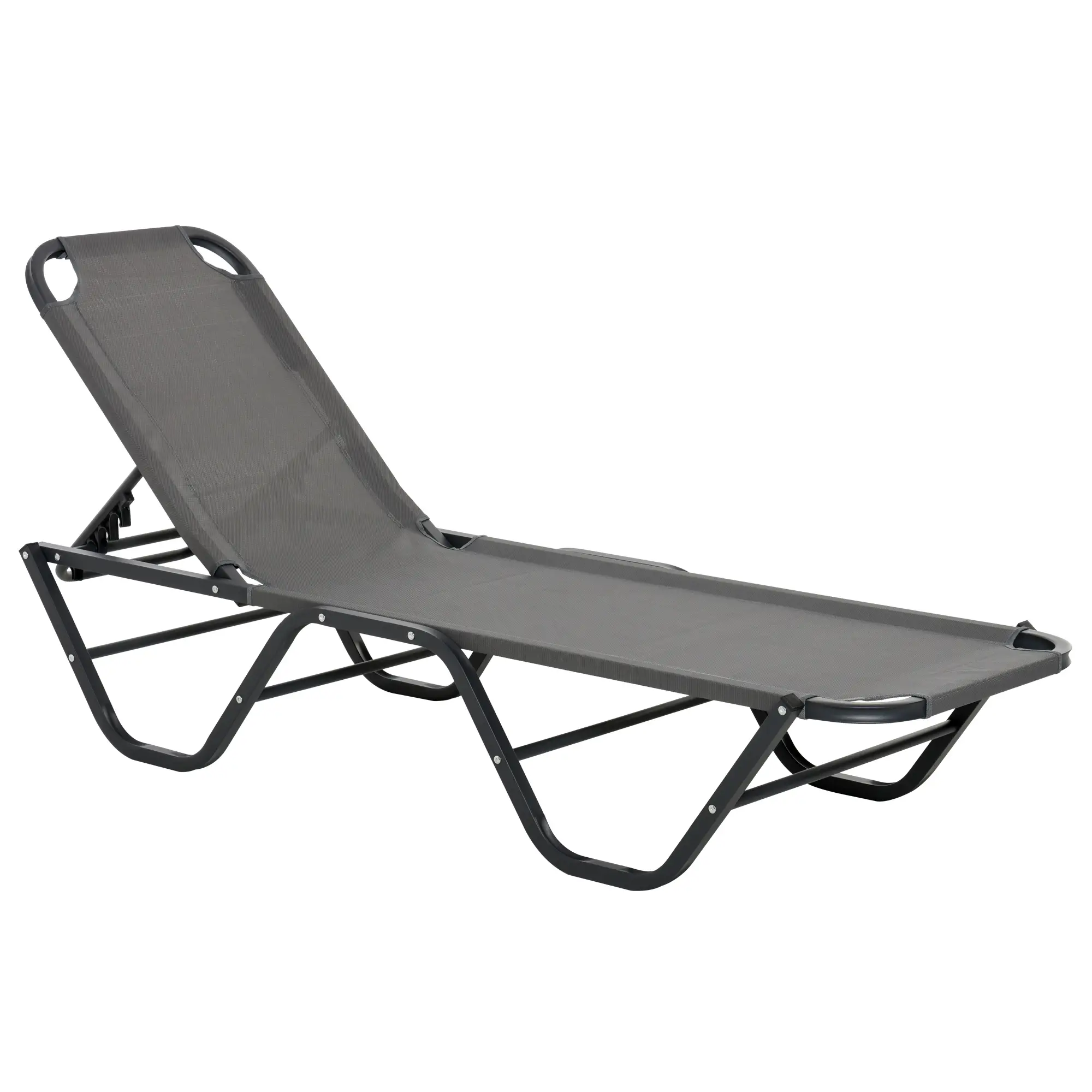 Lettino Prendisole in Alluminio con Schienale Reclinabile a 5 Livelli, 163x58.5x91cm, Grigio